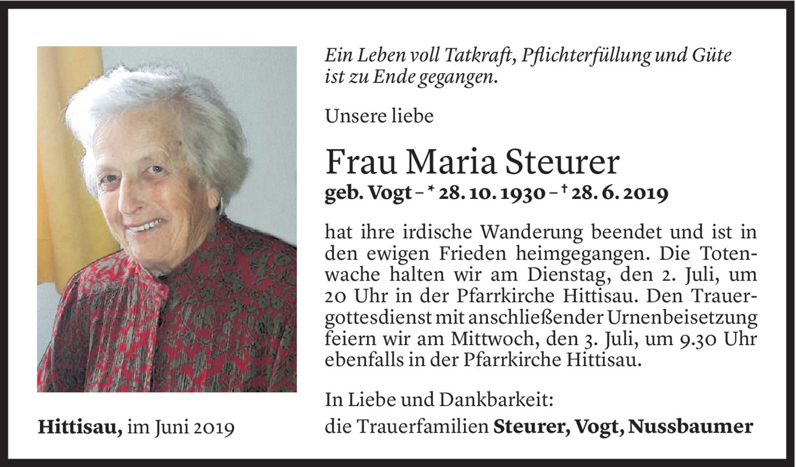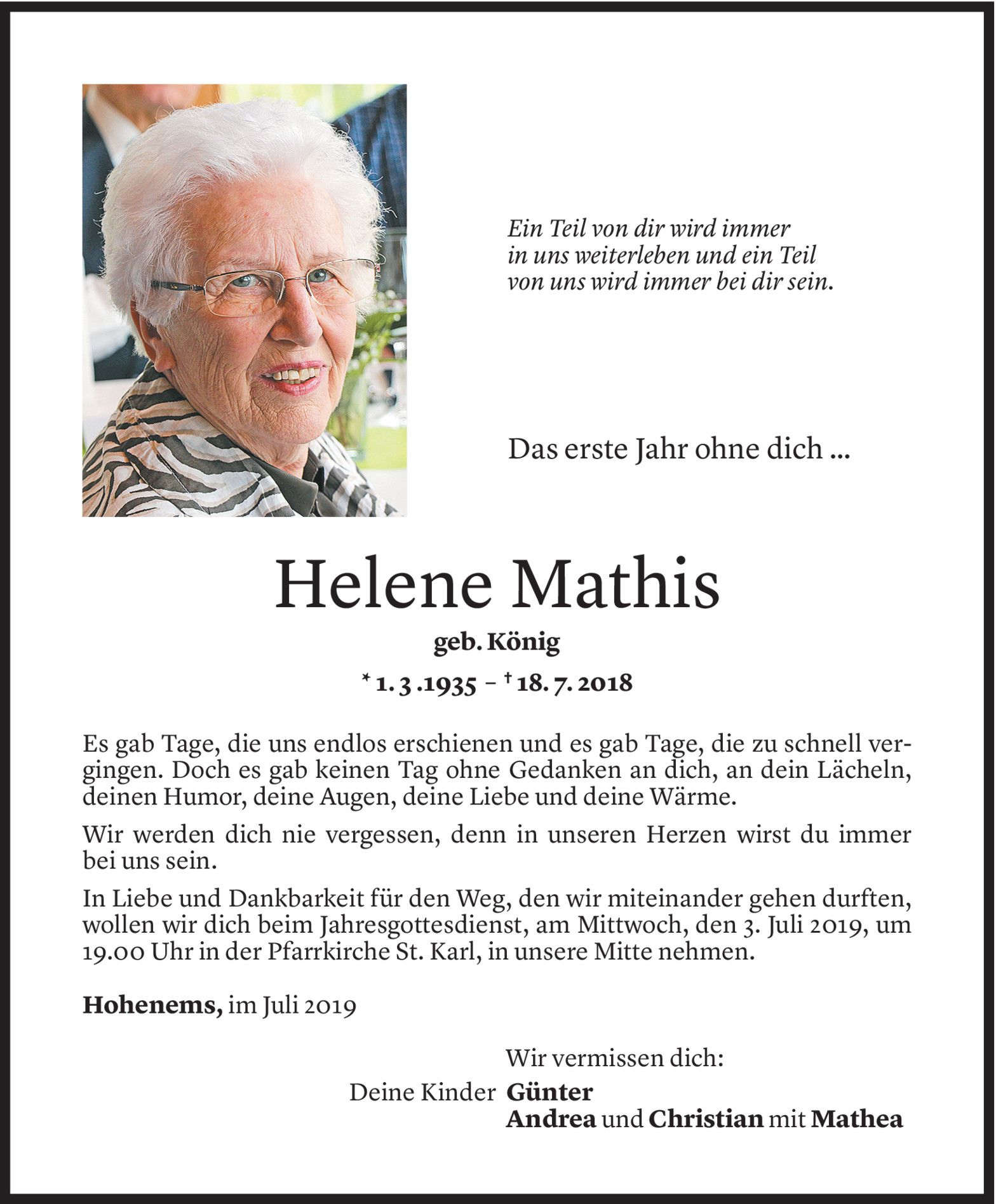 Montag 1. Juli 2019