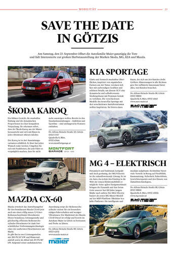 Am 15. September findet das erste Genusserlebnis statt.