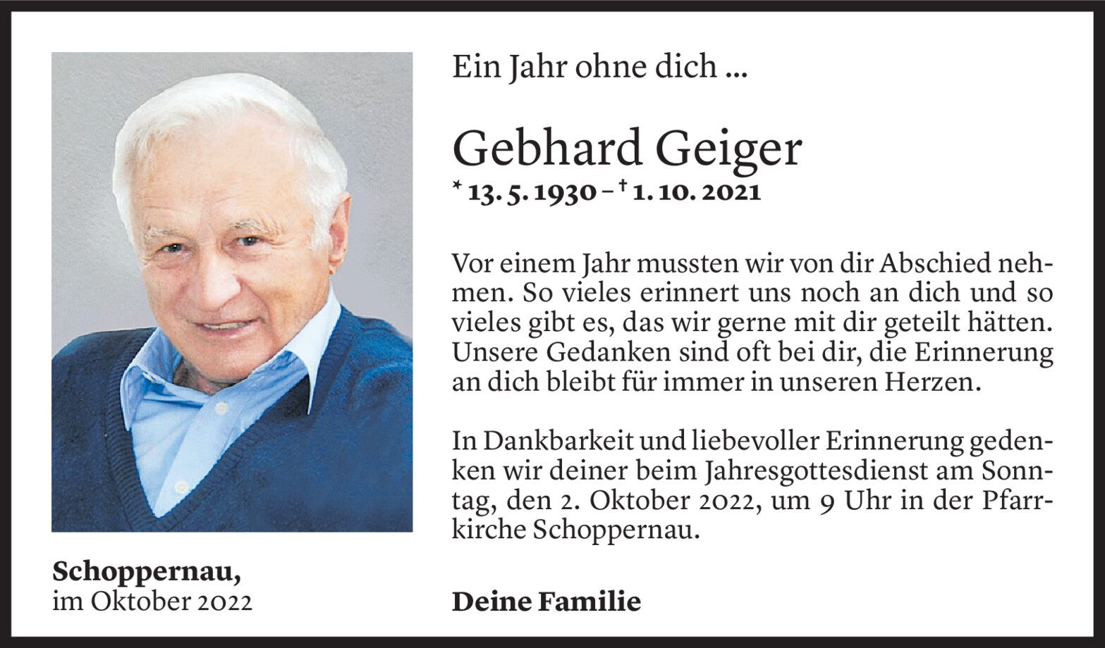 Samstag 1. Oktober 2022