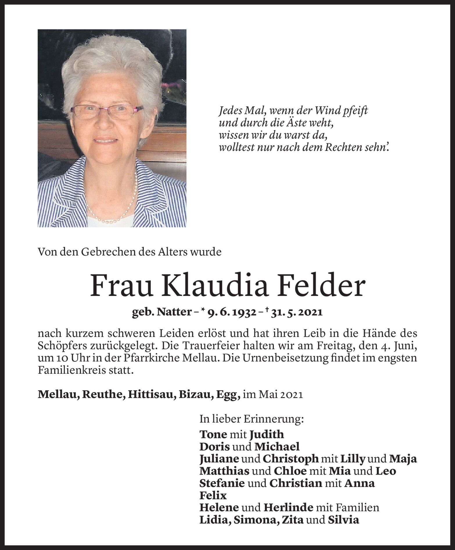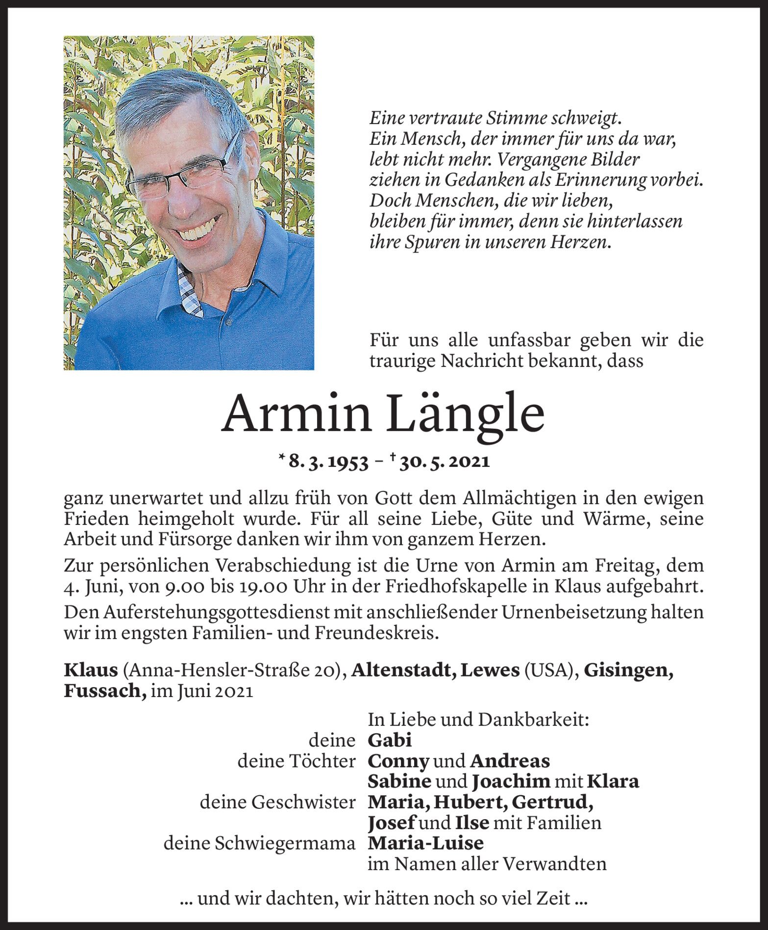 Mittwoch 2. Juni 2021