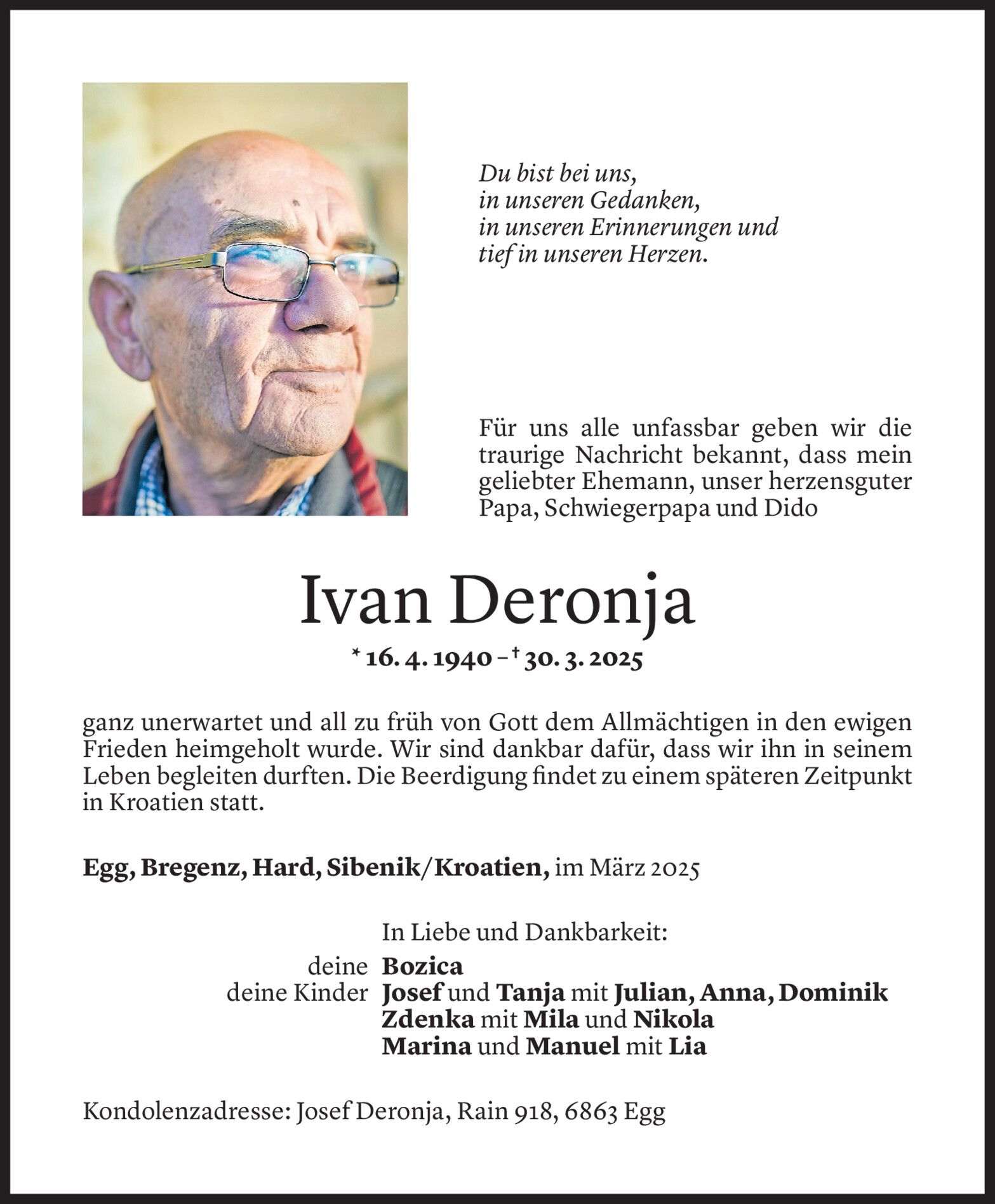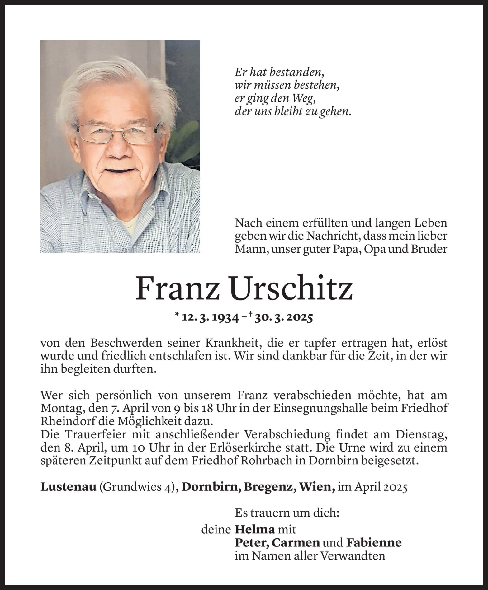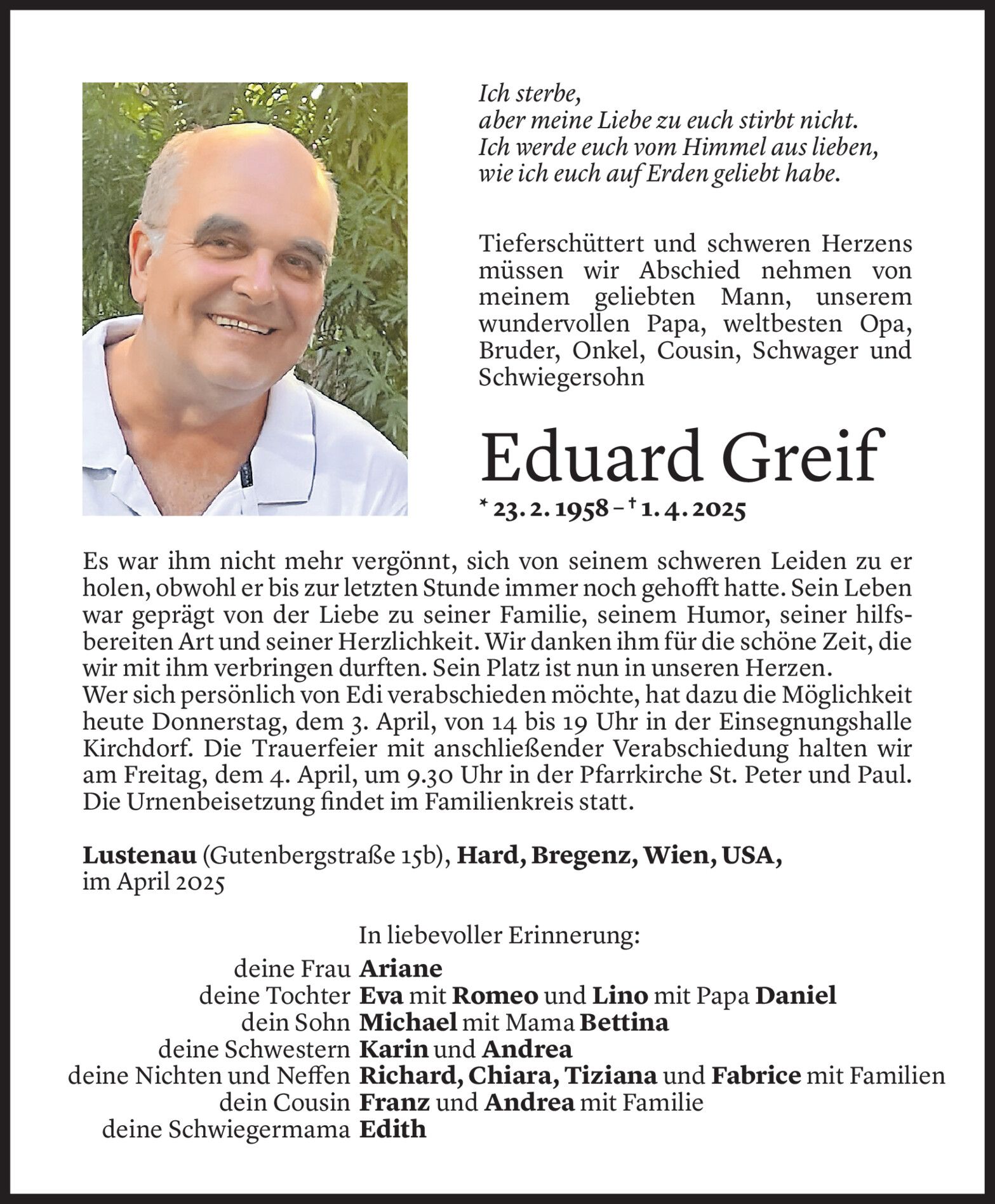 Donnerstag 3. April 2025