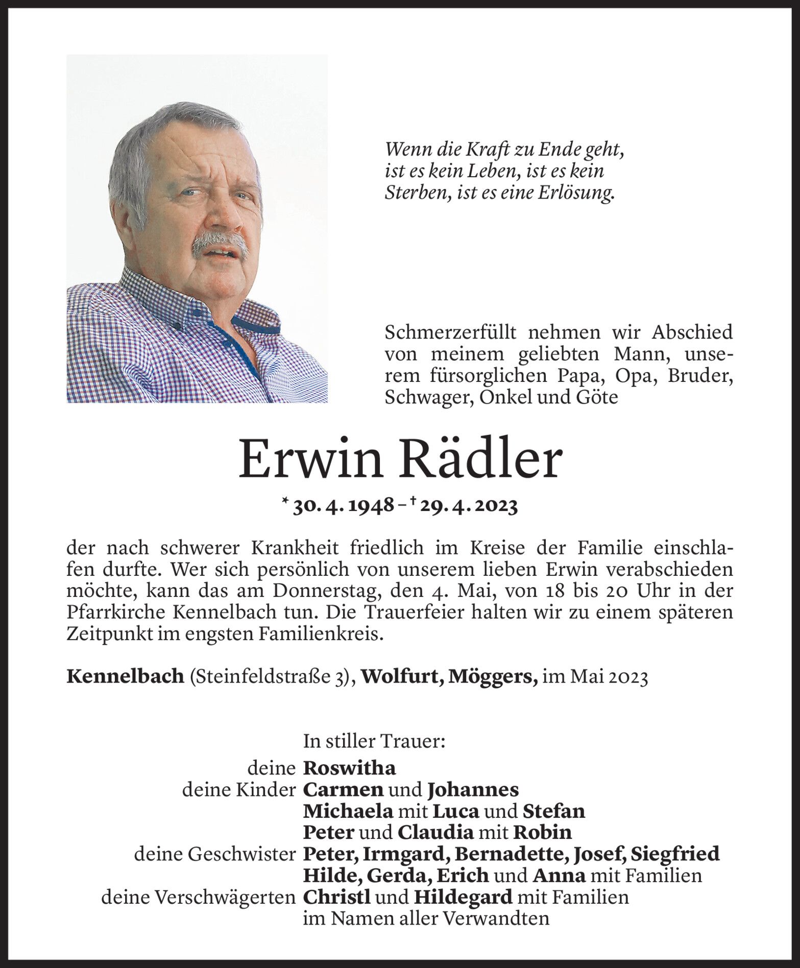 Mittwoch 3. Mai 2023