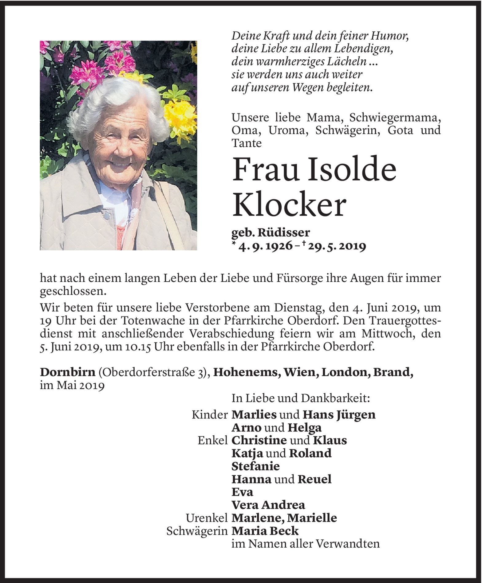 Montag 3. Juni 2019