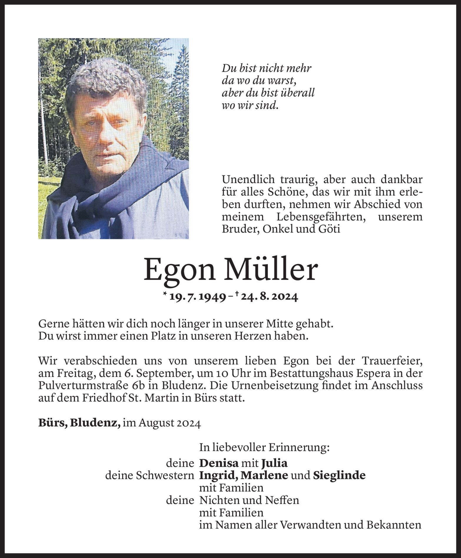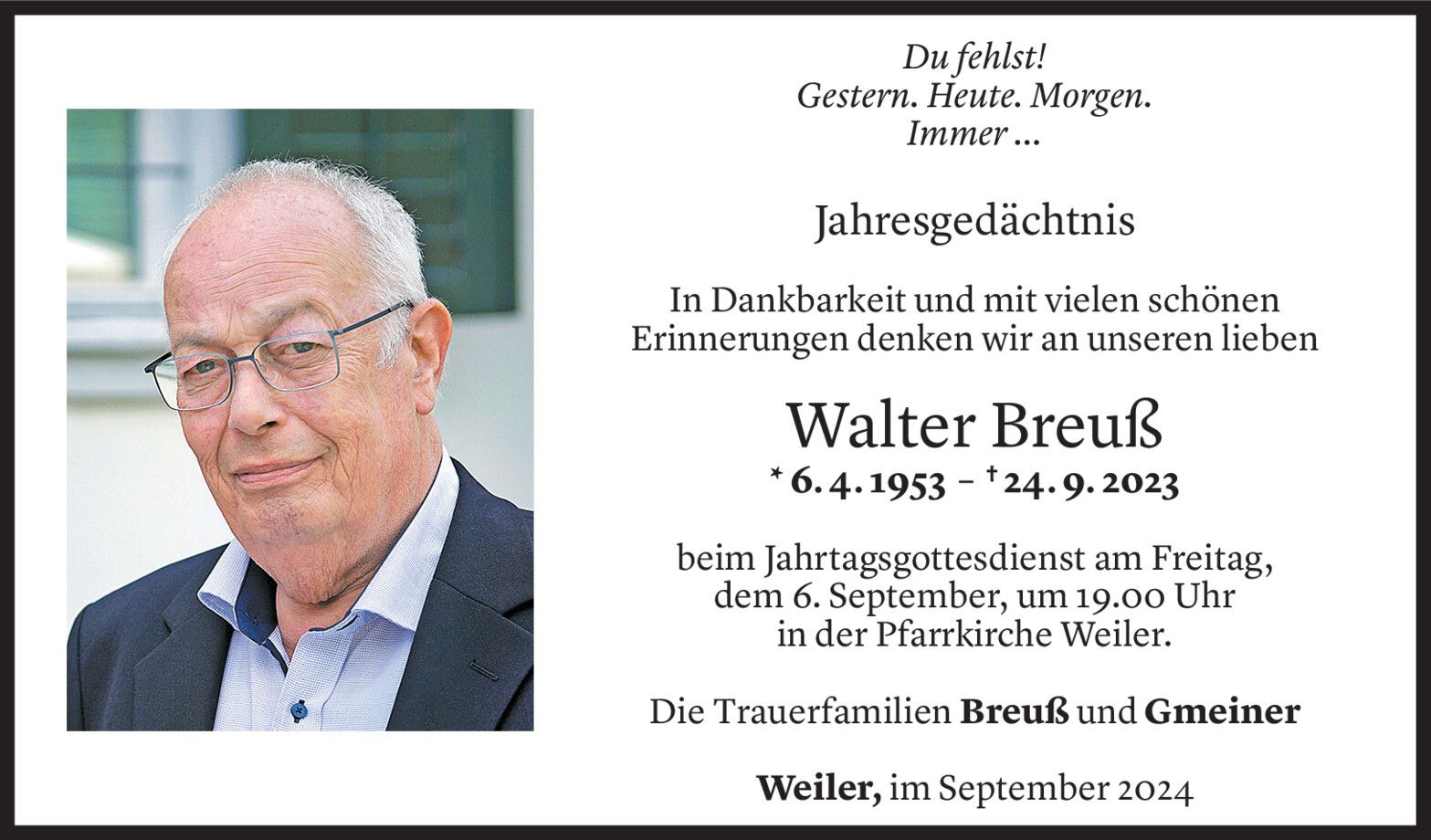 Dienstag 3. September 2024