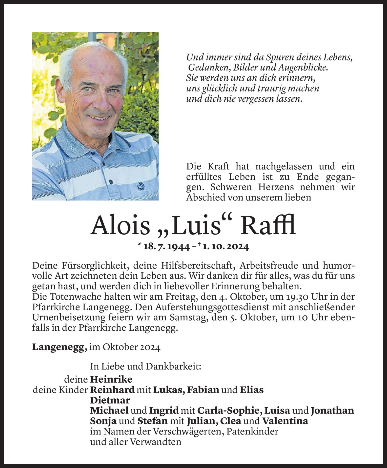 Donnerstag 3. Oktober 2024