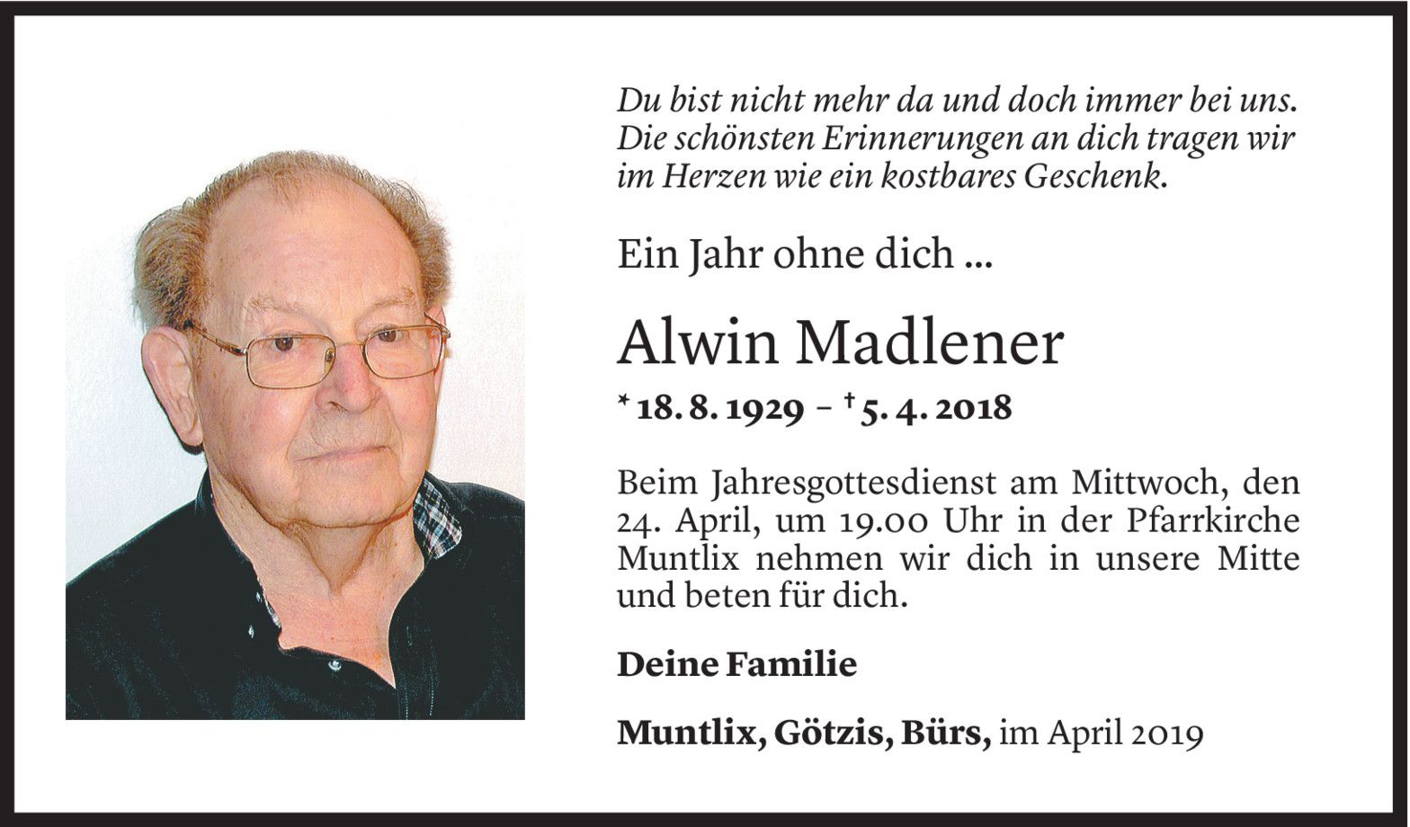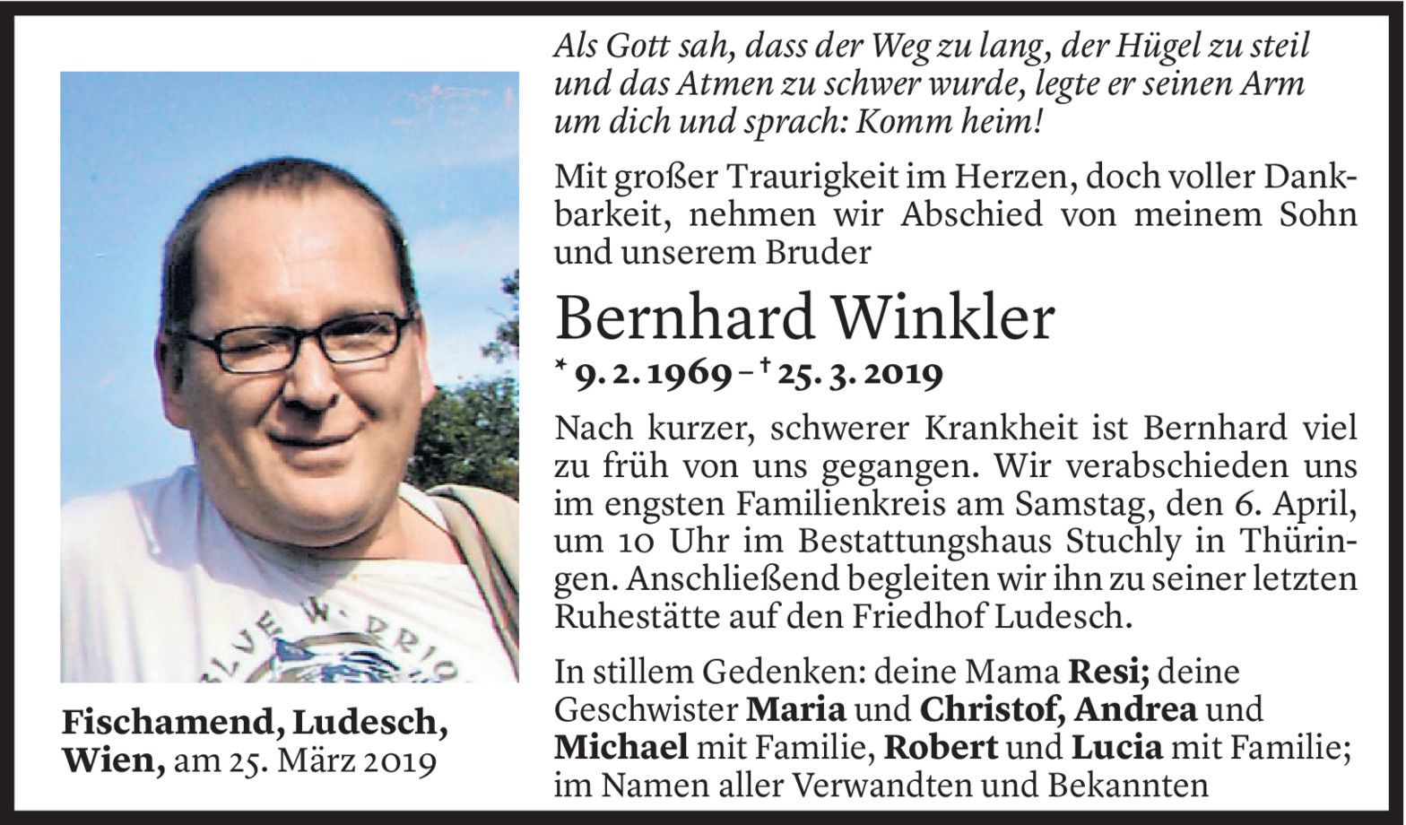 Freitag 5. April 2019