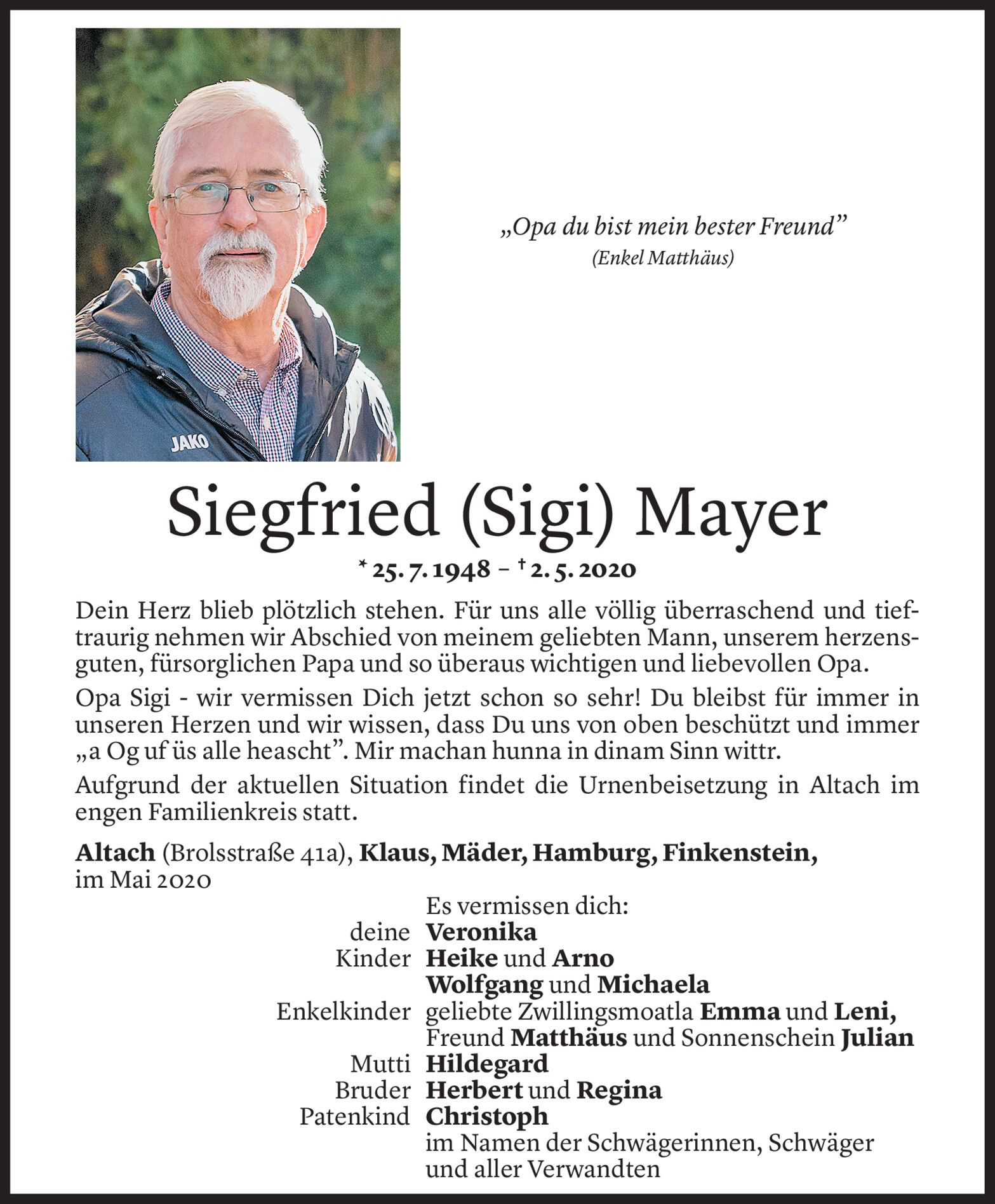 Dienstag 5. Mai 2020