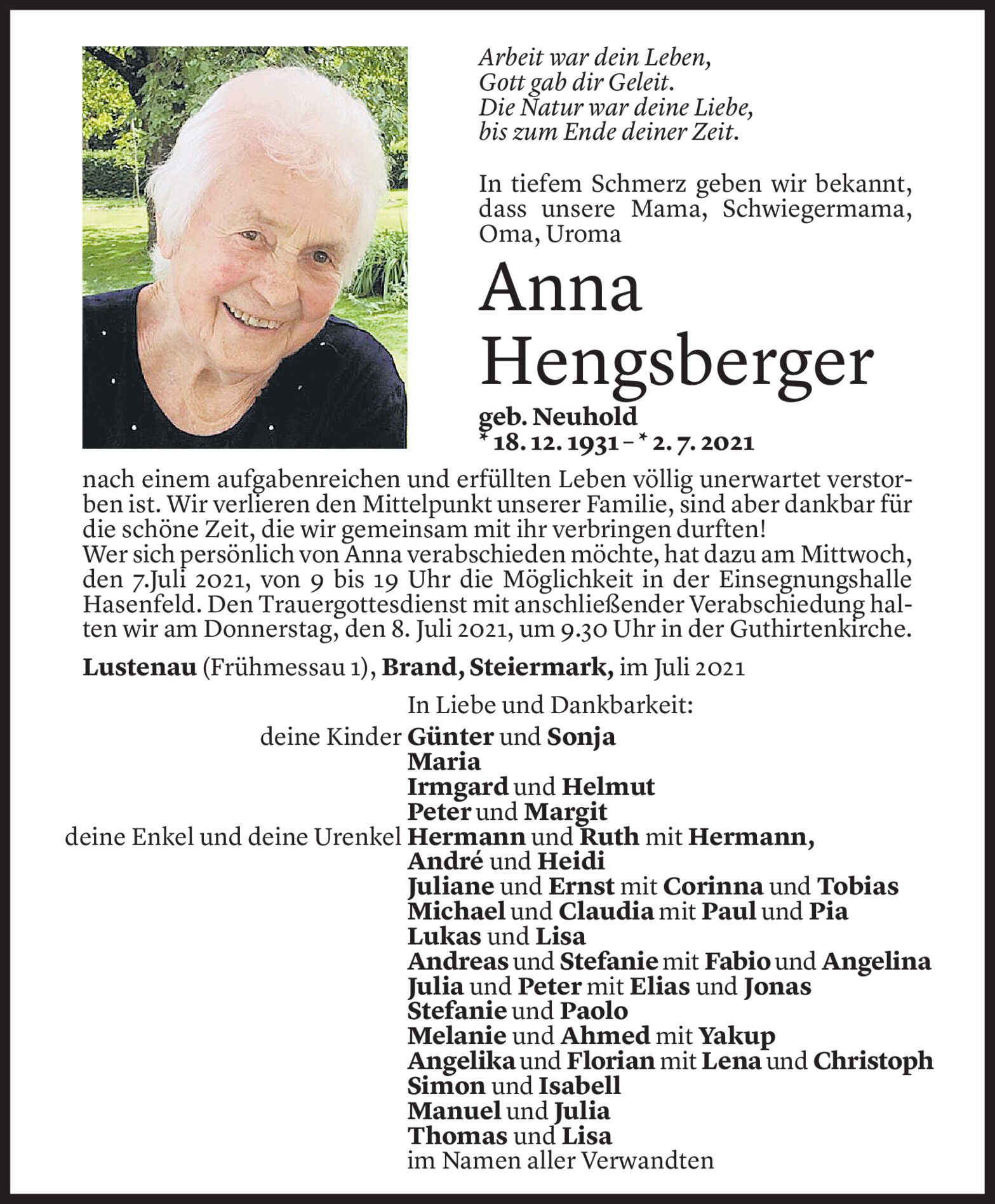 Montag 5. Juli 2021