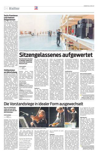 Die Künstlerin Uta Belina Waeger möbelt das Atrium des Vorarlberg Museums auf.