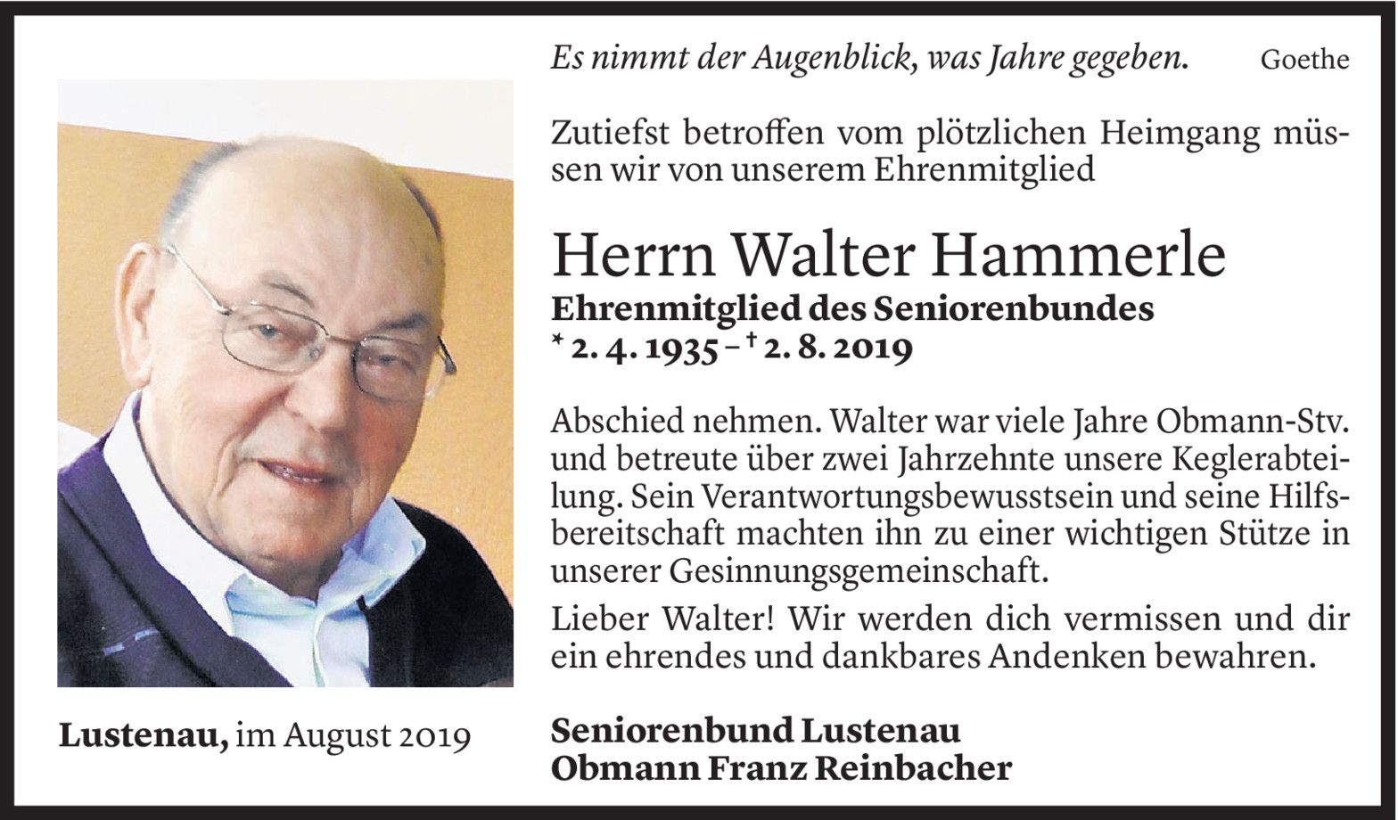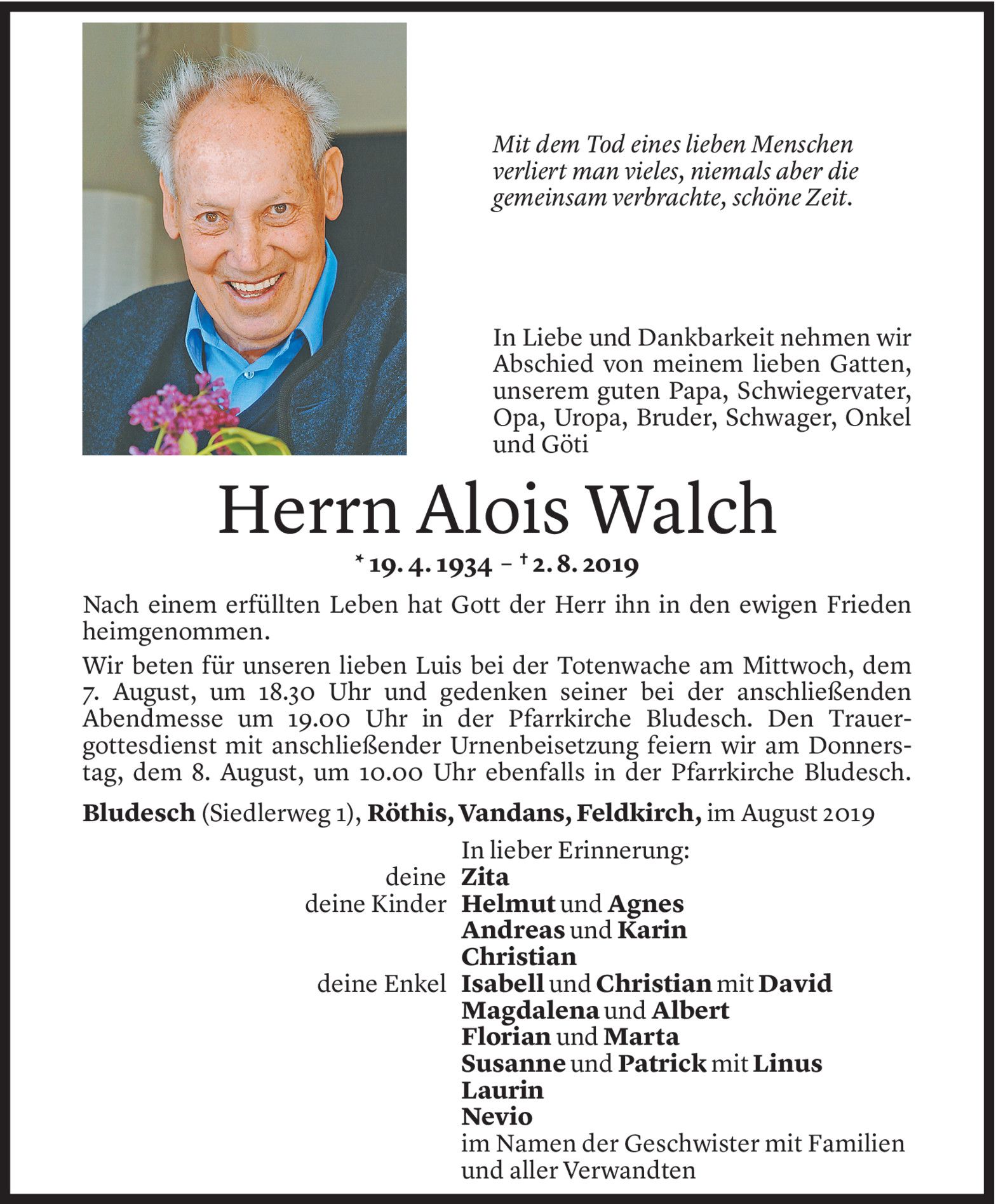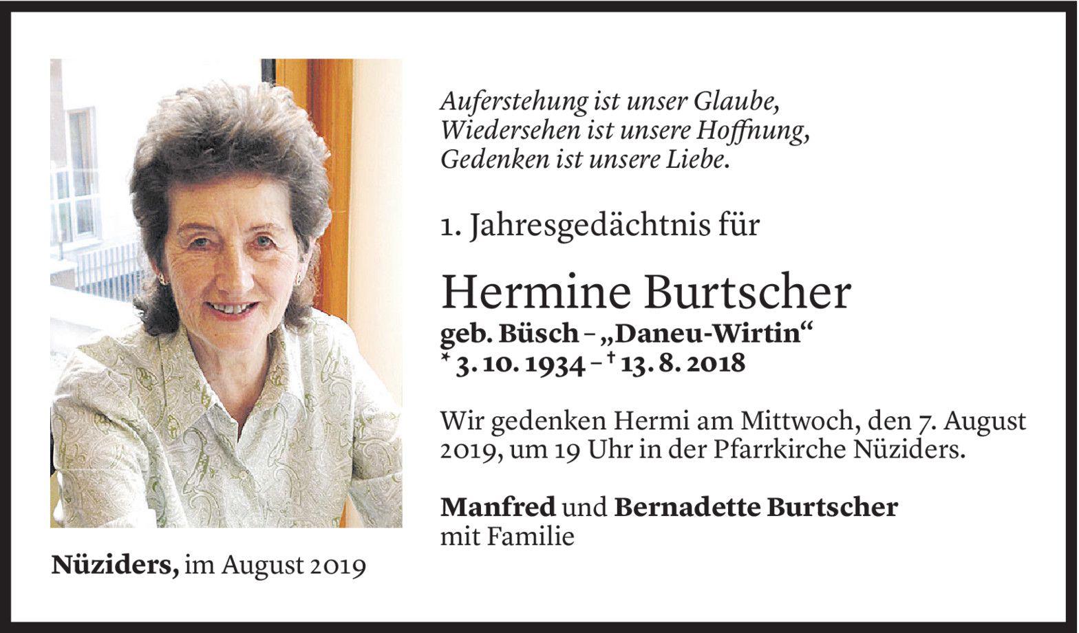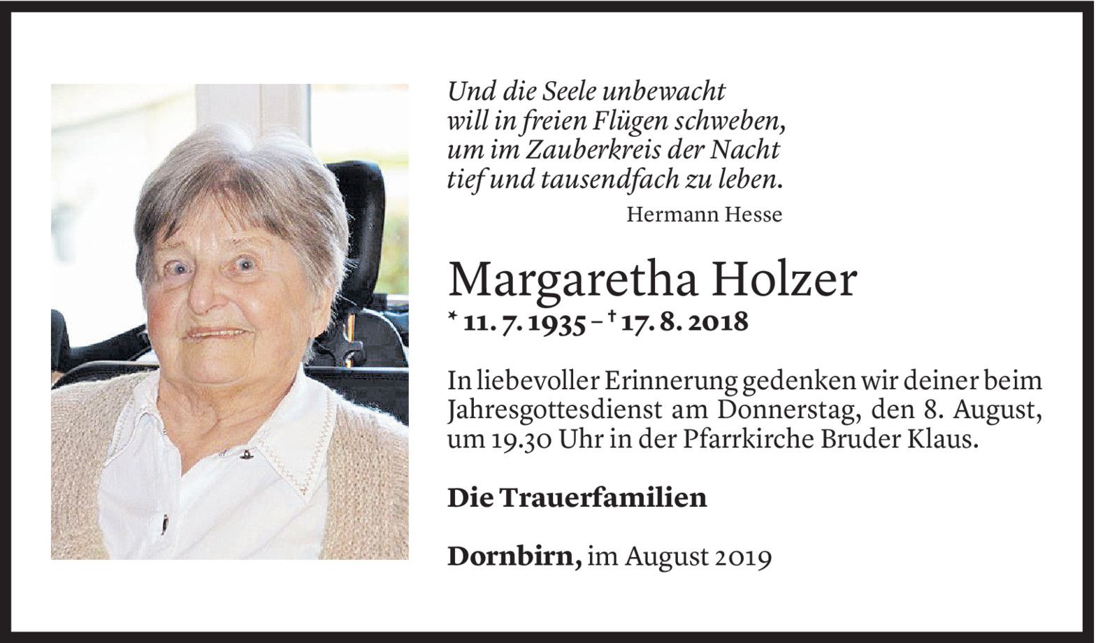 Dienstag 6. August 2019