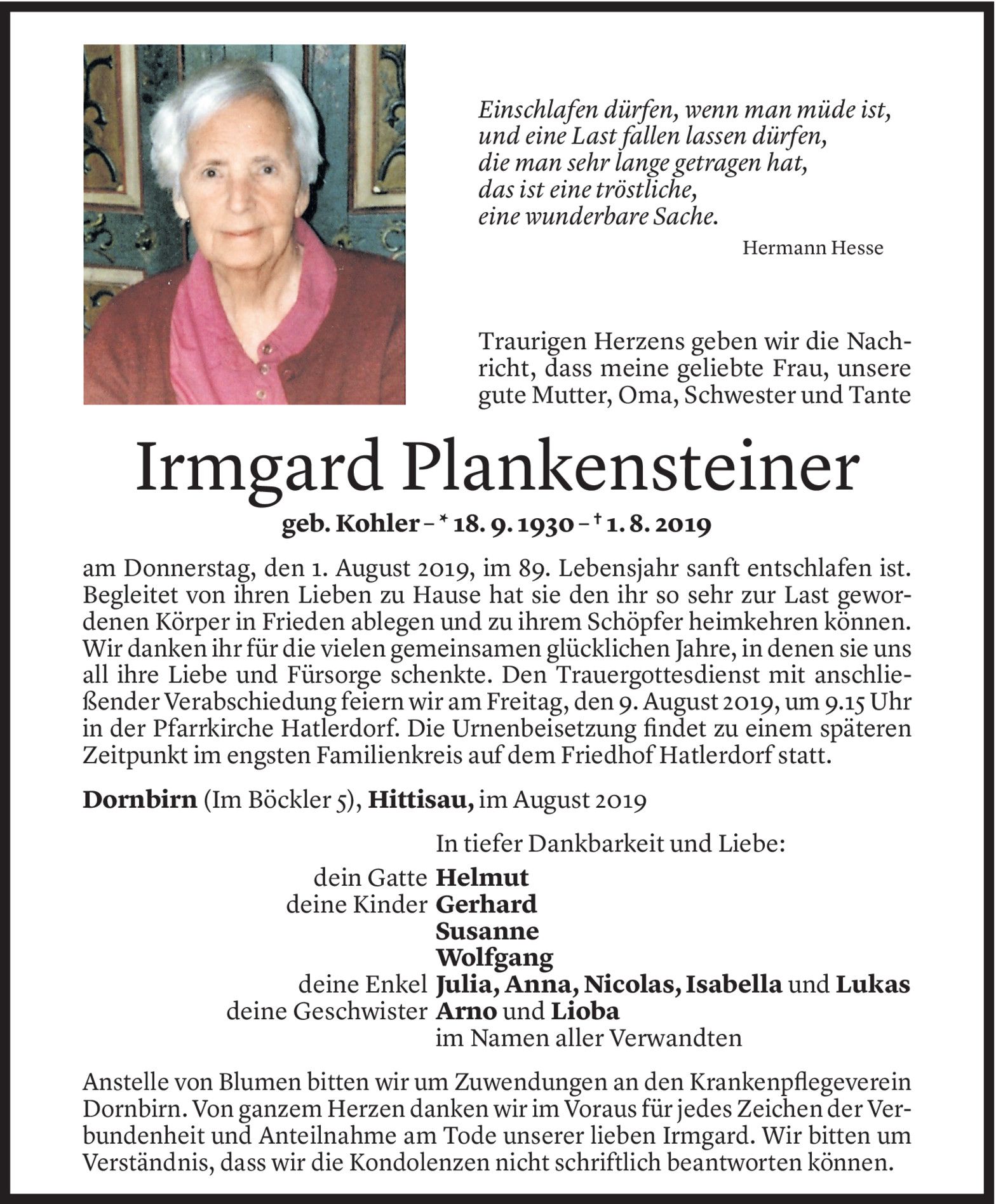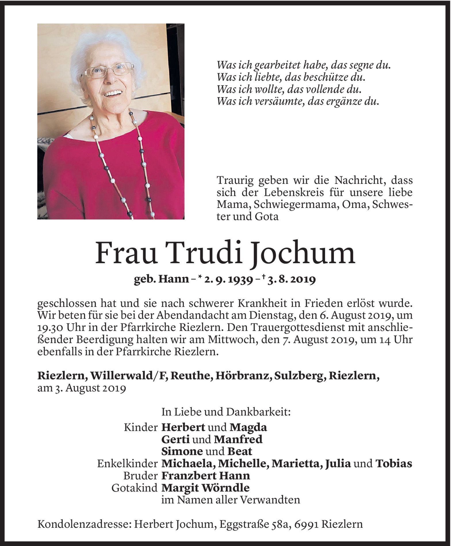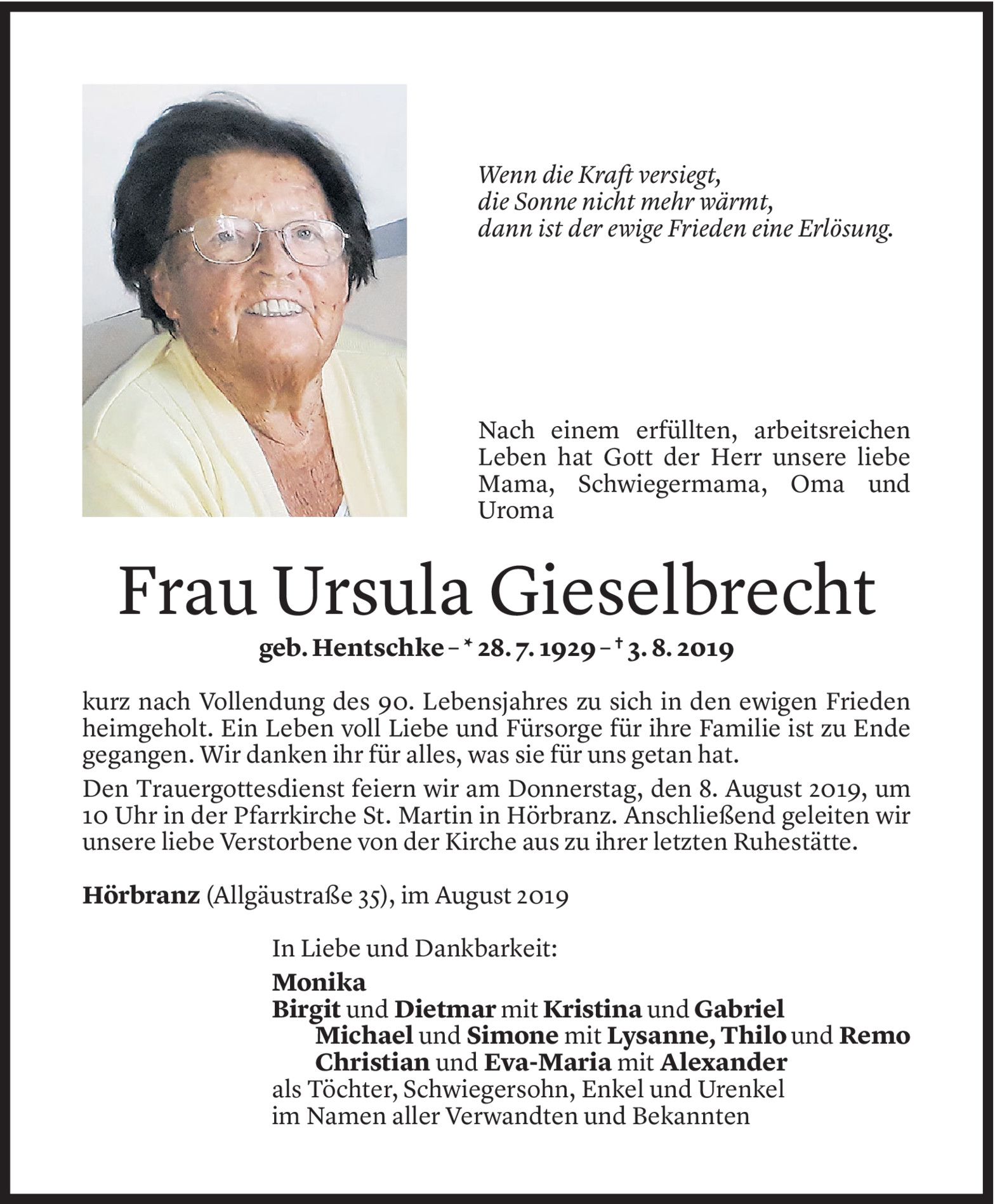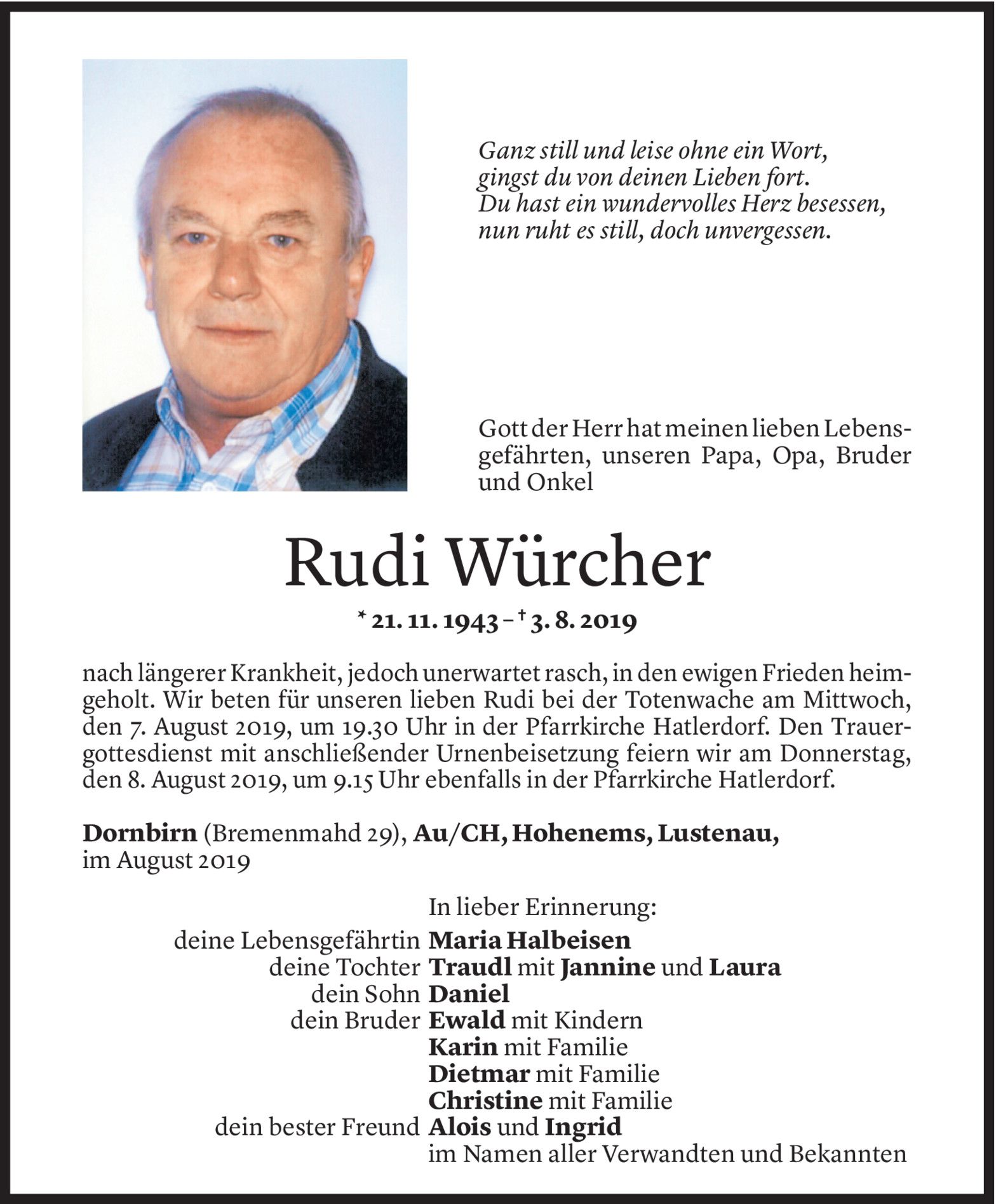 Dienstag 6. August 2019