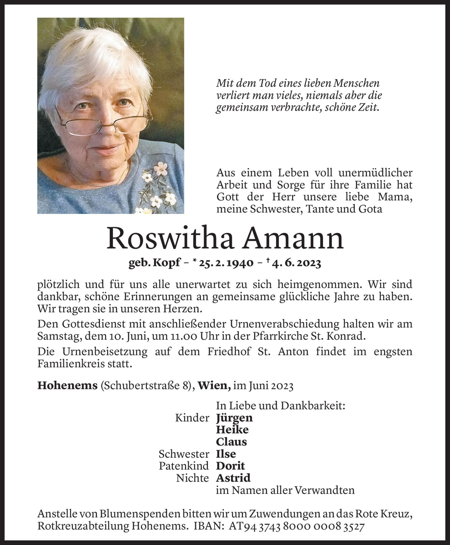 Mittwoch 7. Juni 2023