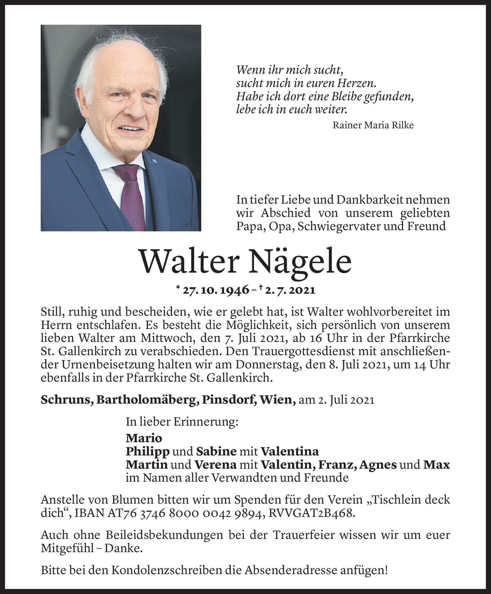Verabschiedung von Pfarrer Willi Schwärzler in Gaißau