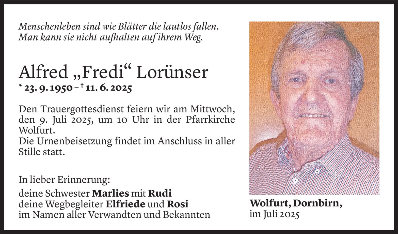 Montag 7. Juli 2025