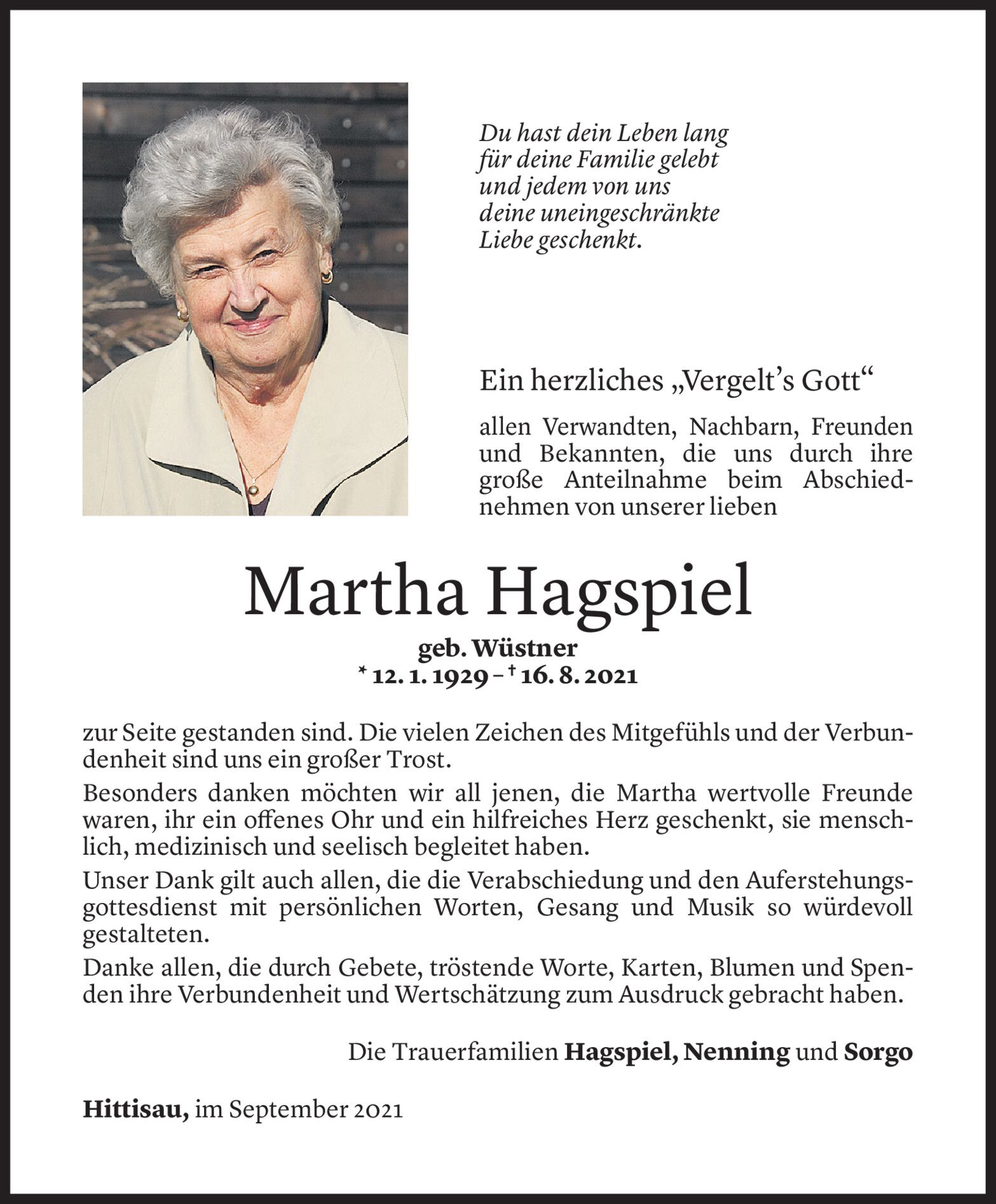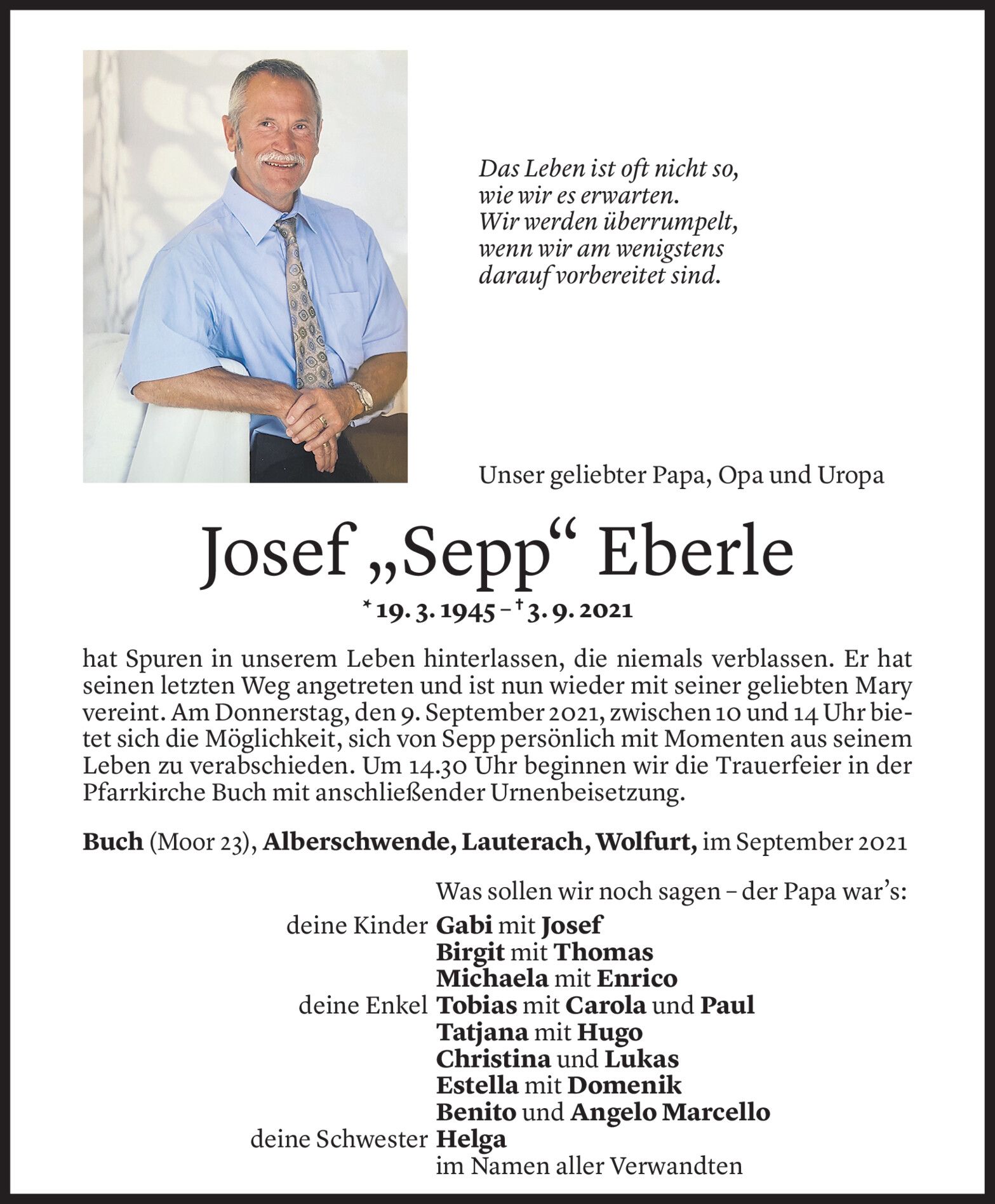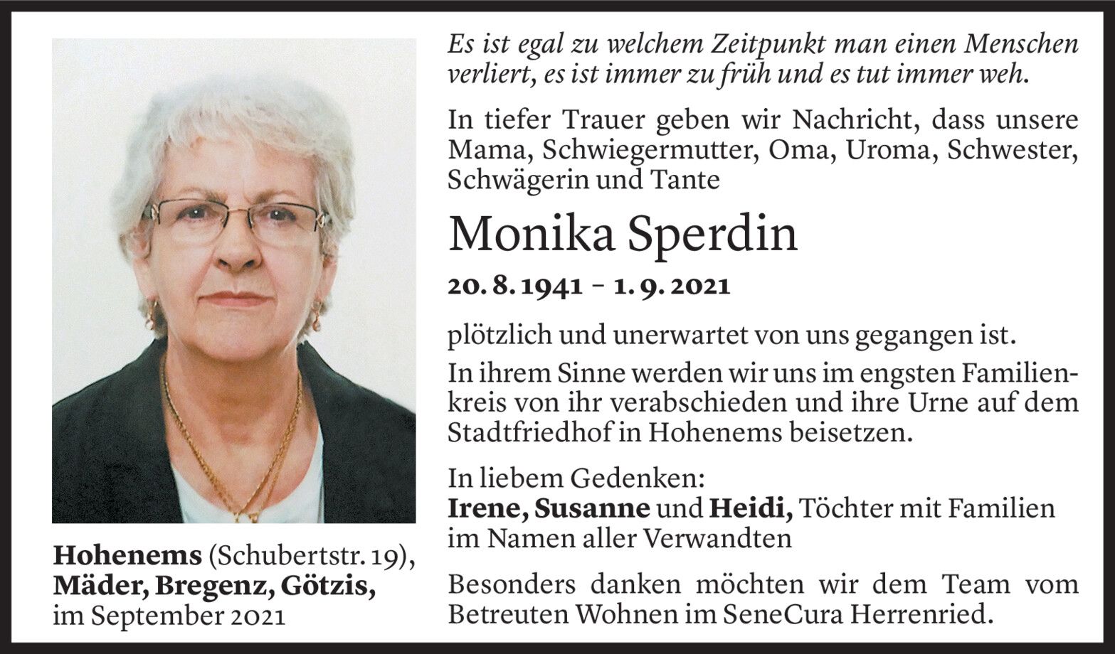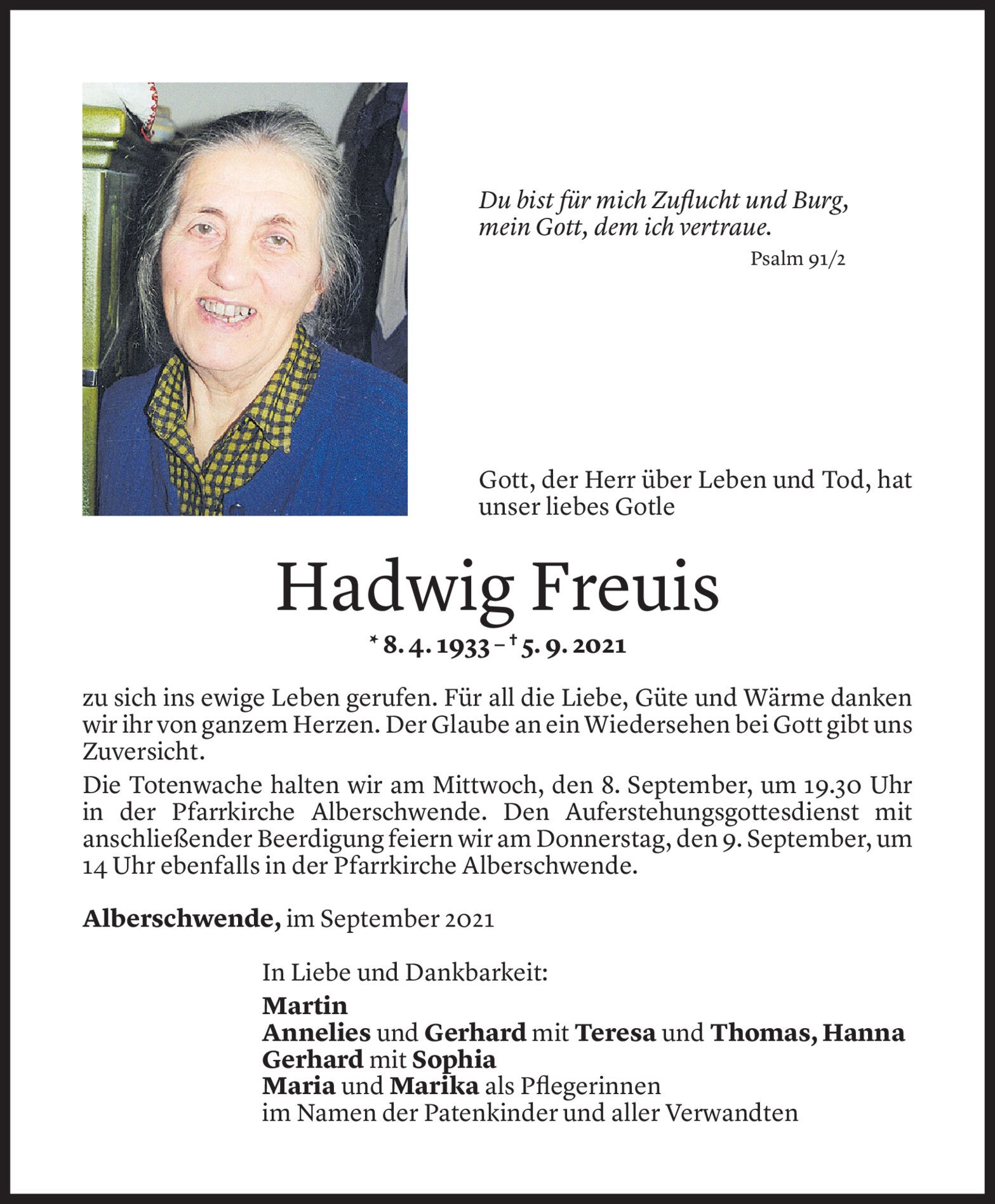 Dienstag 7. September 2021