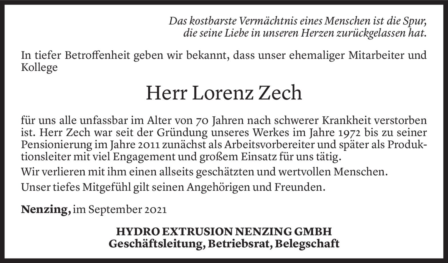 Polanec verstorben