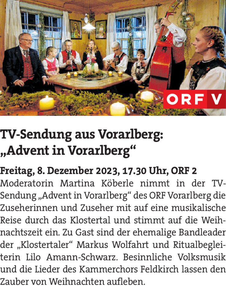 Das Hörbranzer Musikheim präsentiert ein musikalisch-poetisches Weihnachtsprogramm.