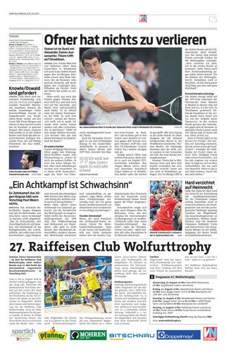 Steirer ist im Duell mit Alexander Zverev Aussenseiter. Thiem trifft auf Donaldson.