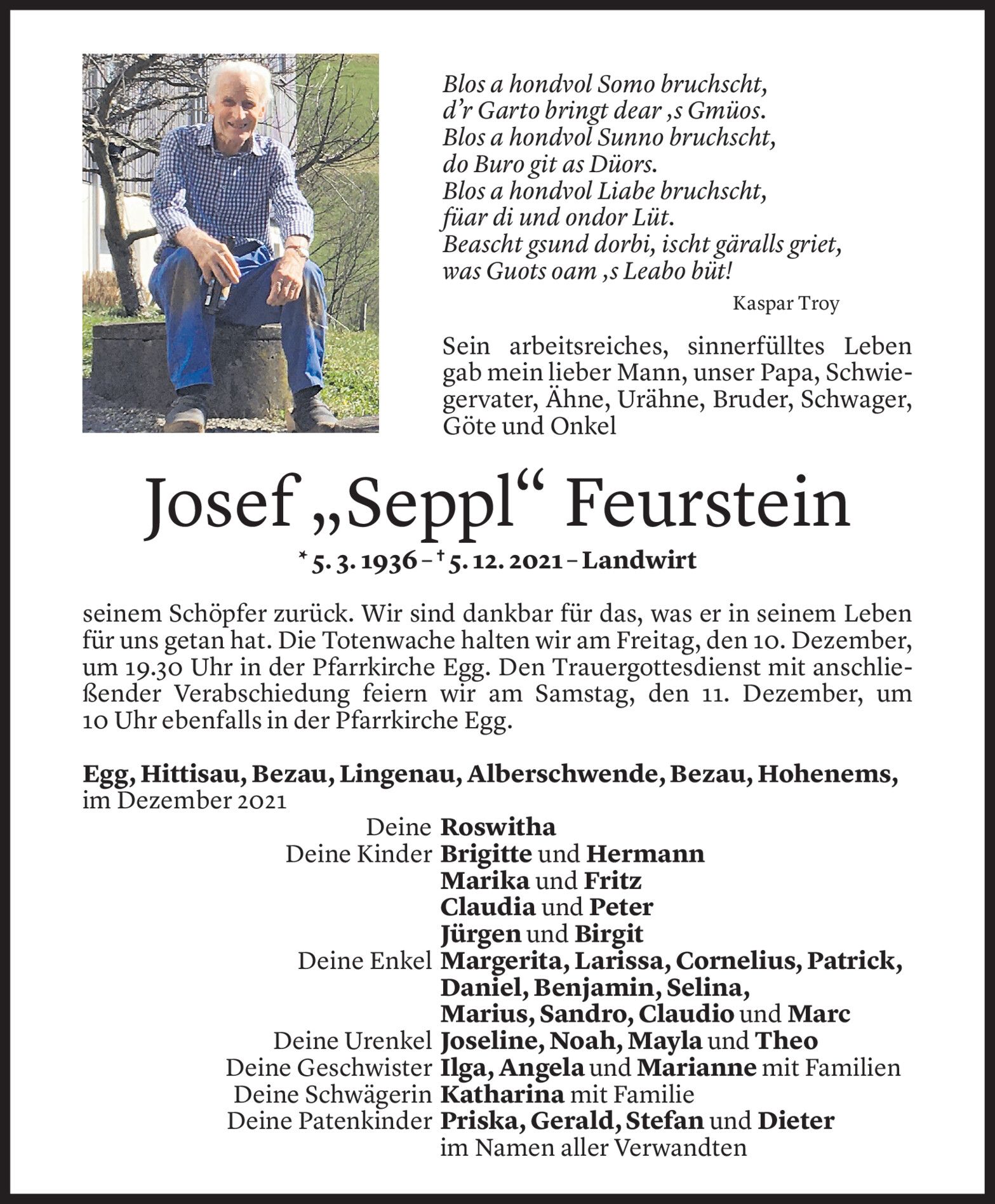 Auch auf dem Hof der Familie Hager brennt am Feiertag ein Mahnfeuer.
