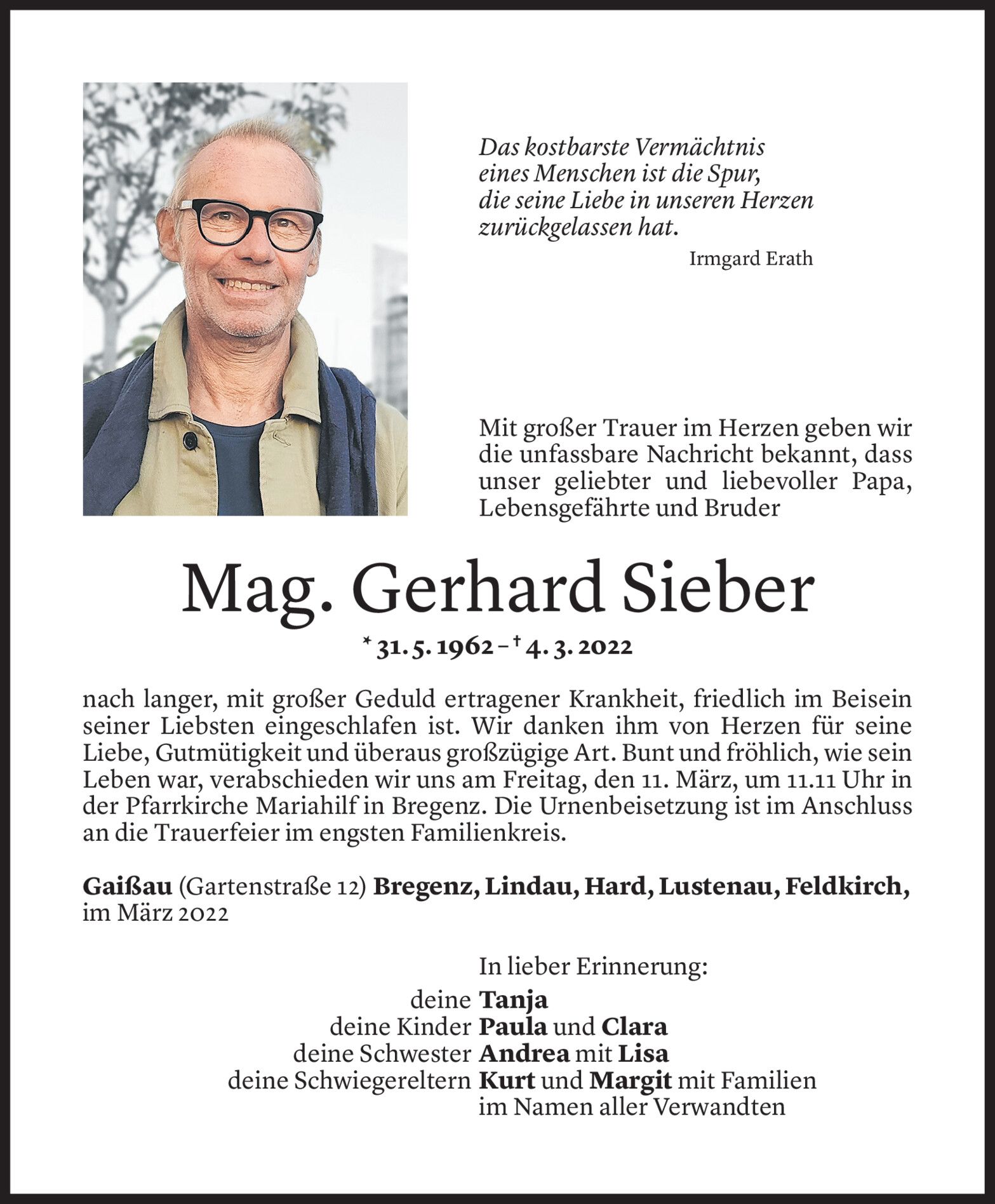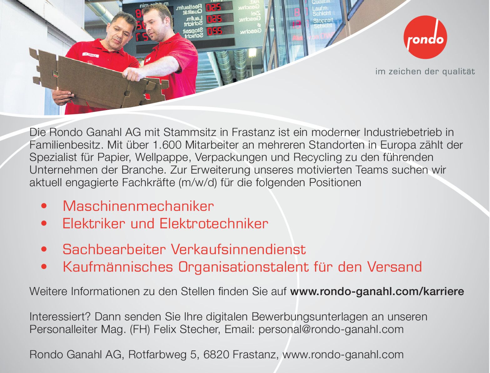 Name, Standort in Weiler und Mitarbeiter bleiben.