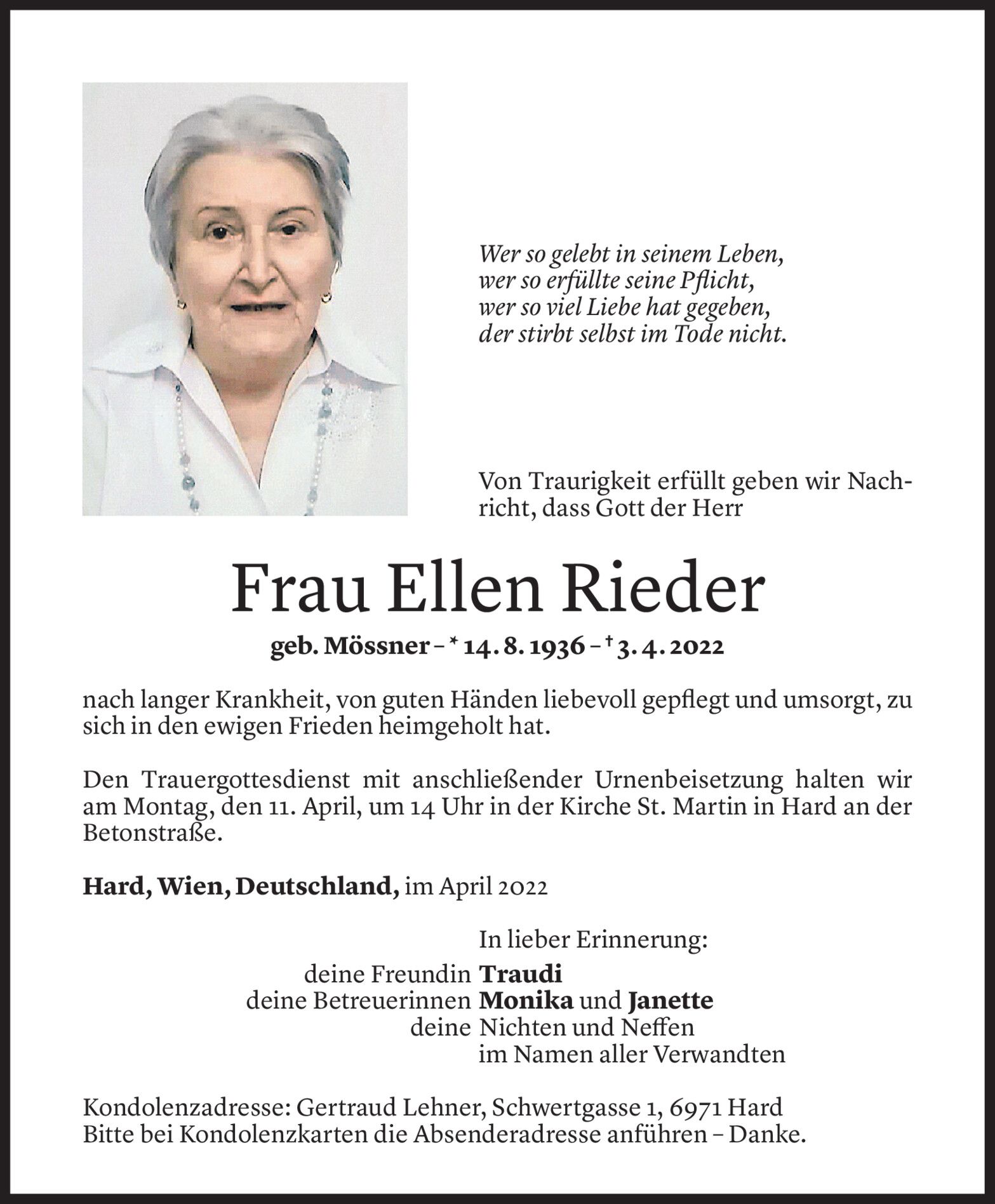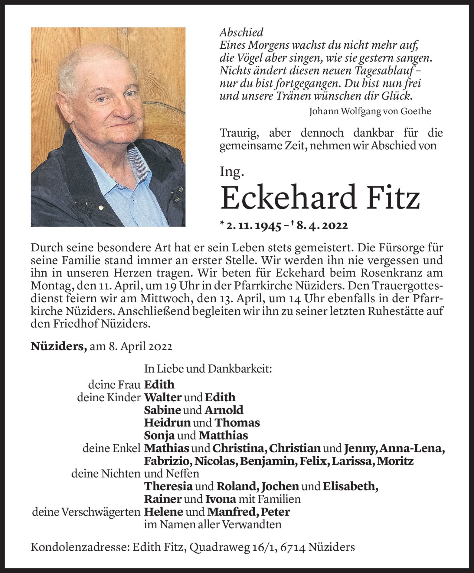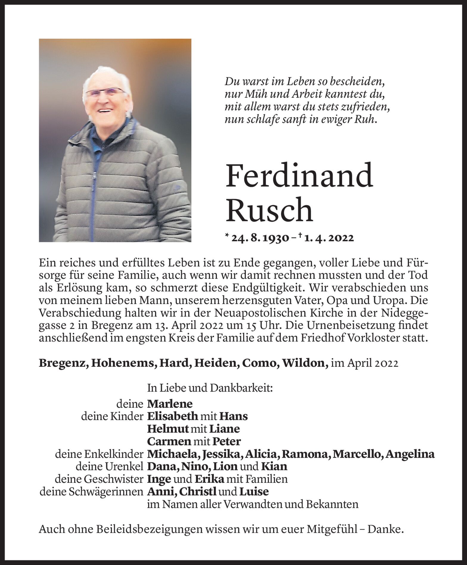 Samstag 9. April 2022