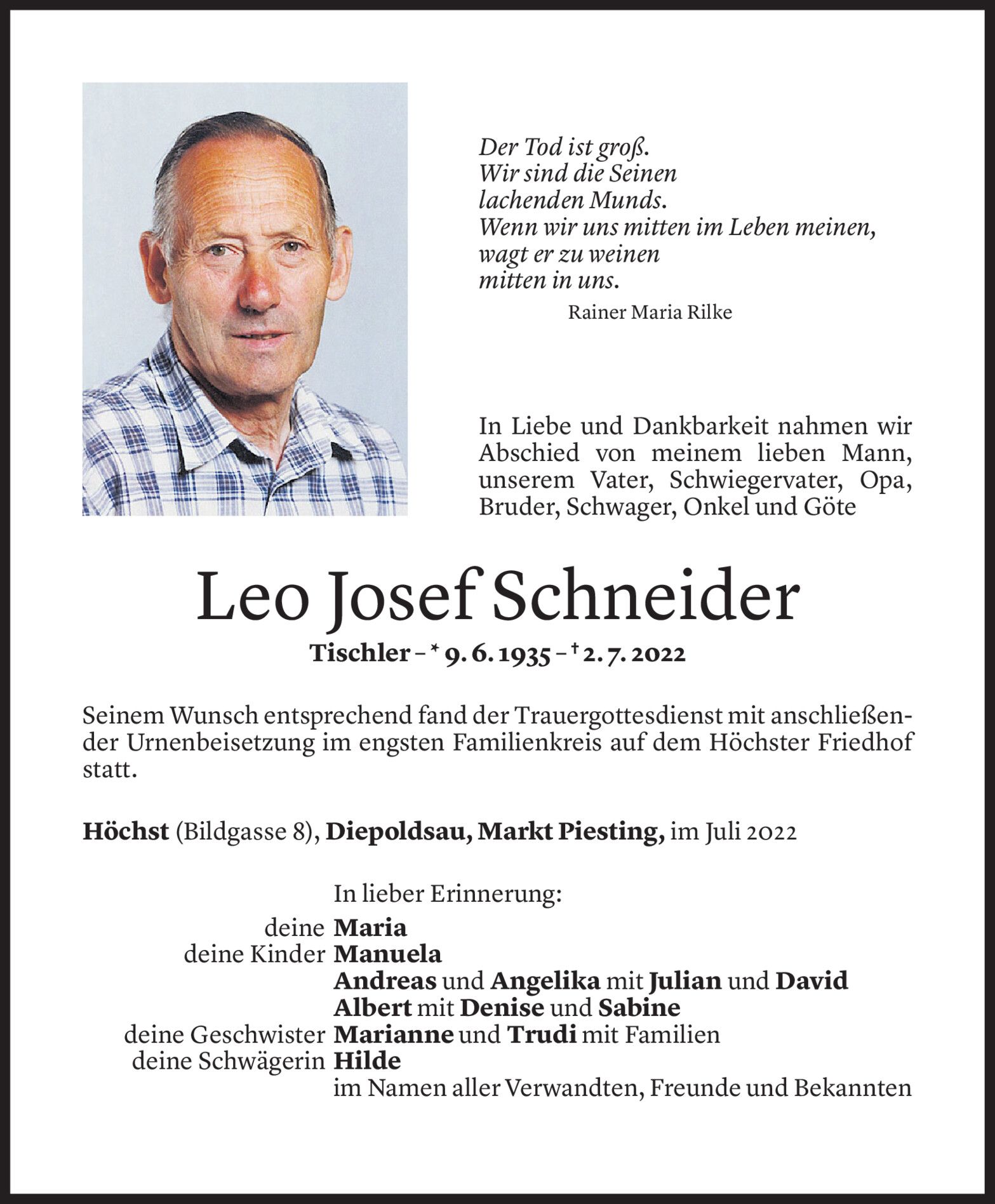 Samstag 9. Juli 2022