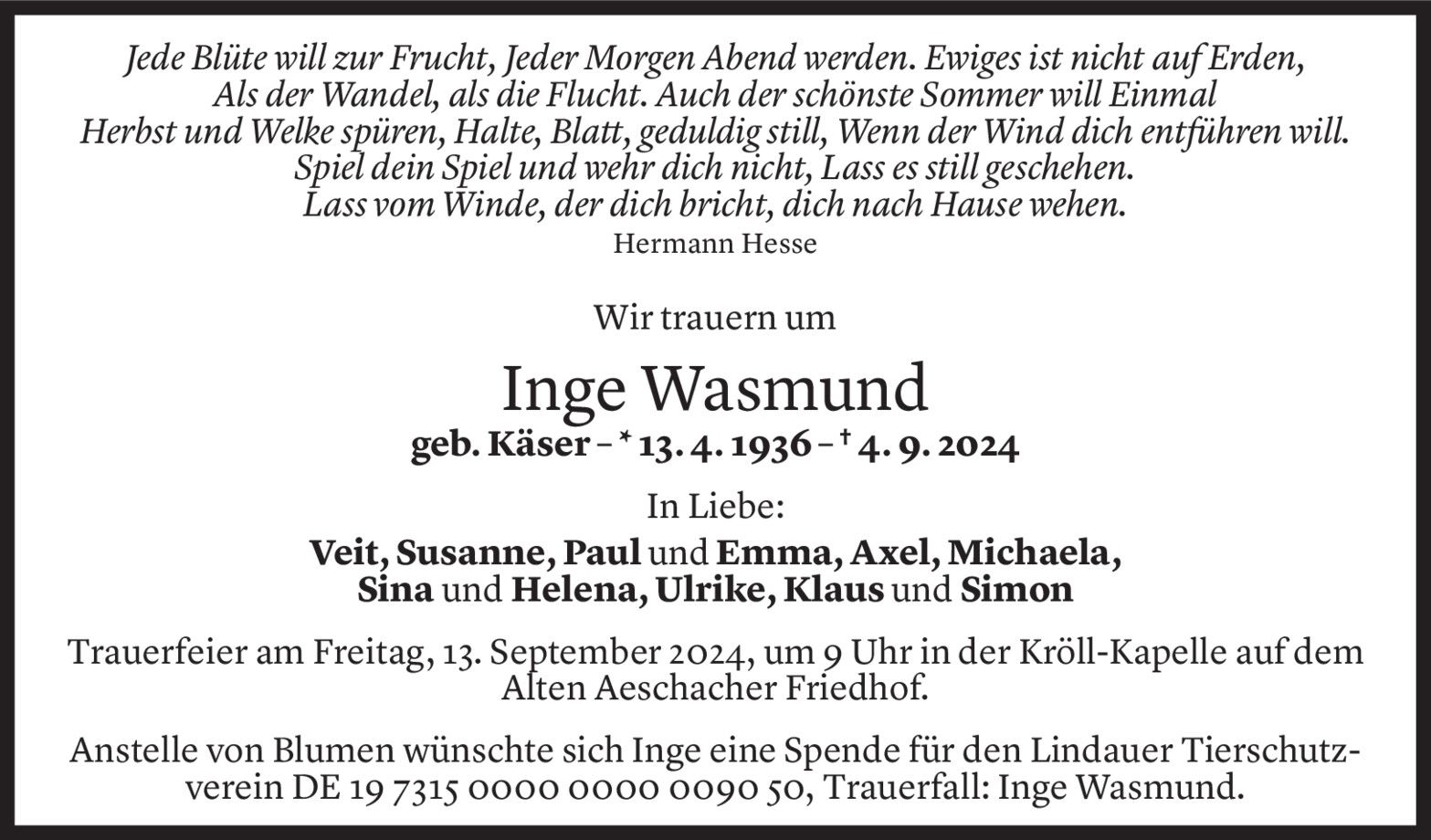Dienstag 10. September 2024