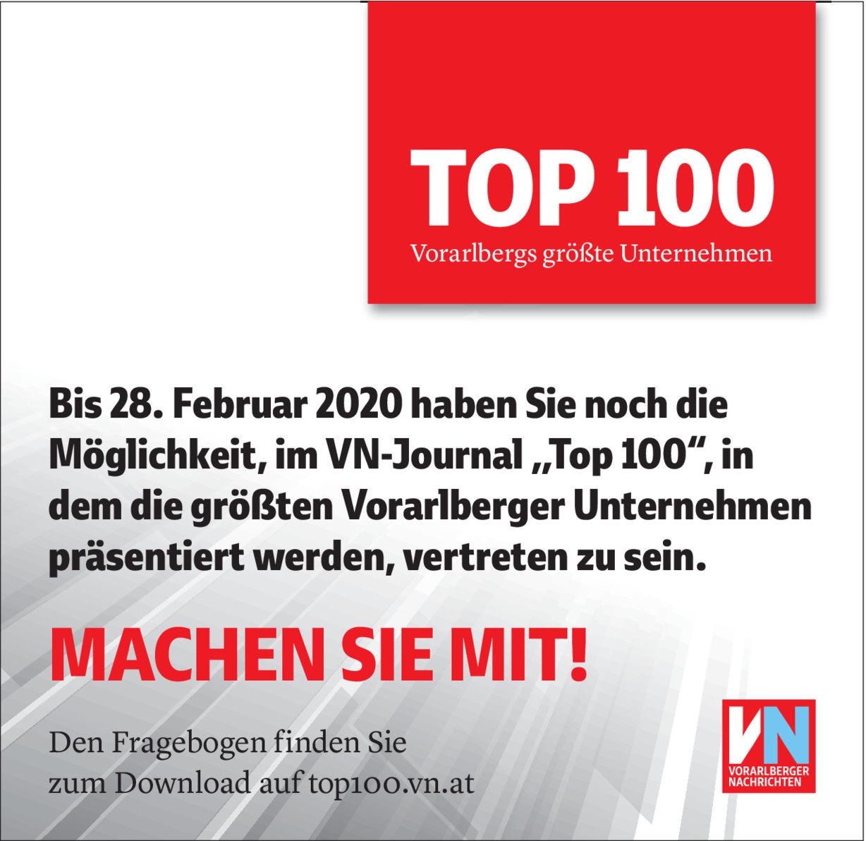 Vorarlbergs größte Unternehmen: Jetzt Daten einreichen