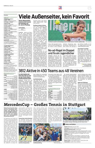 Tennis-Mannschaftsmeisterschaft startet am Samstag. Am 24. Juni ist Finaltag.