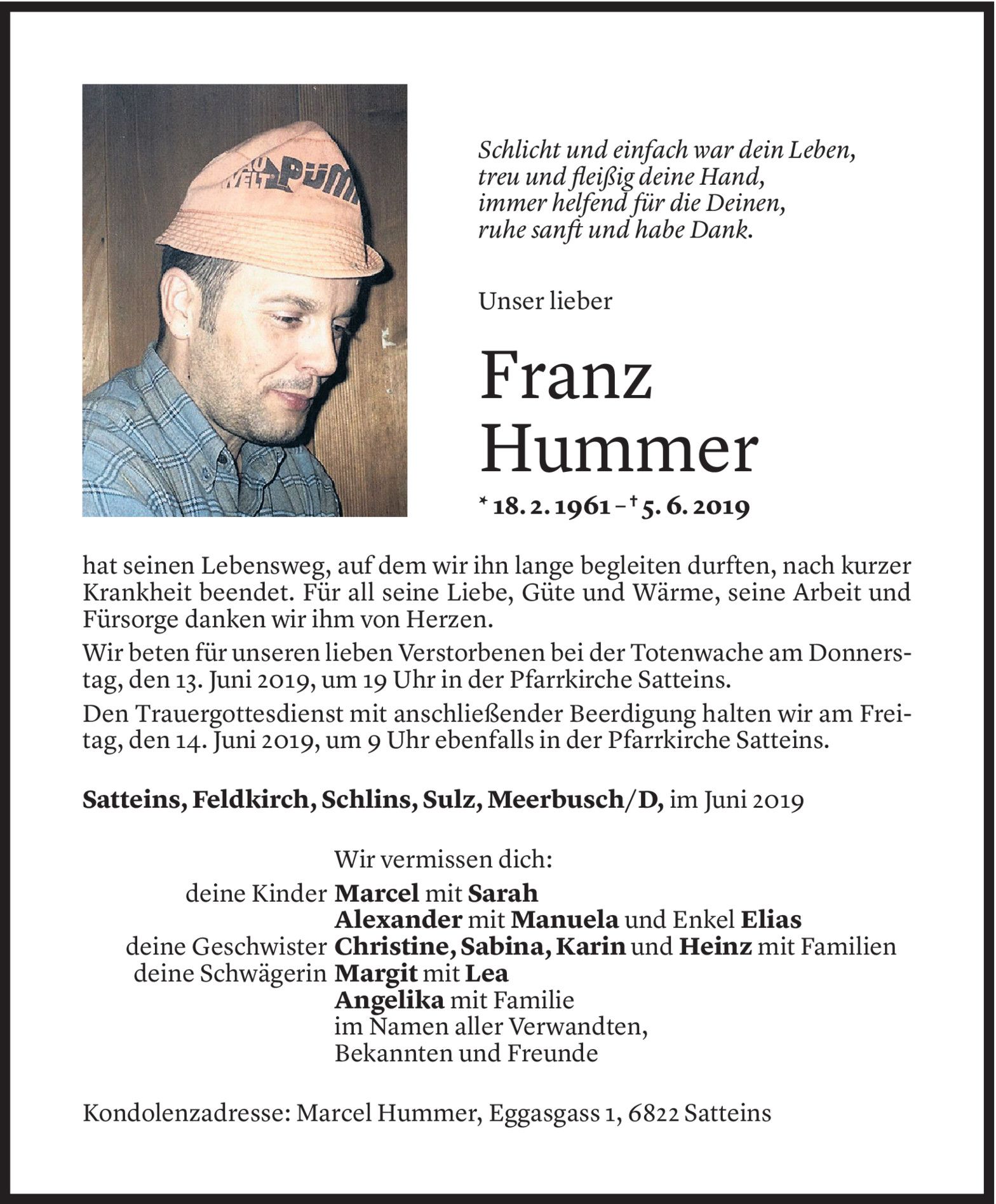 Dienstag 11. Juni 2019