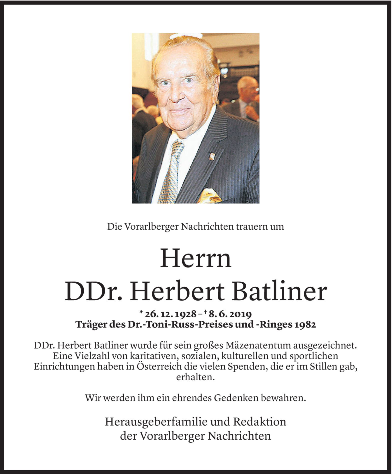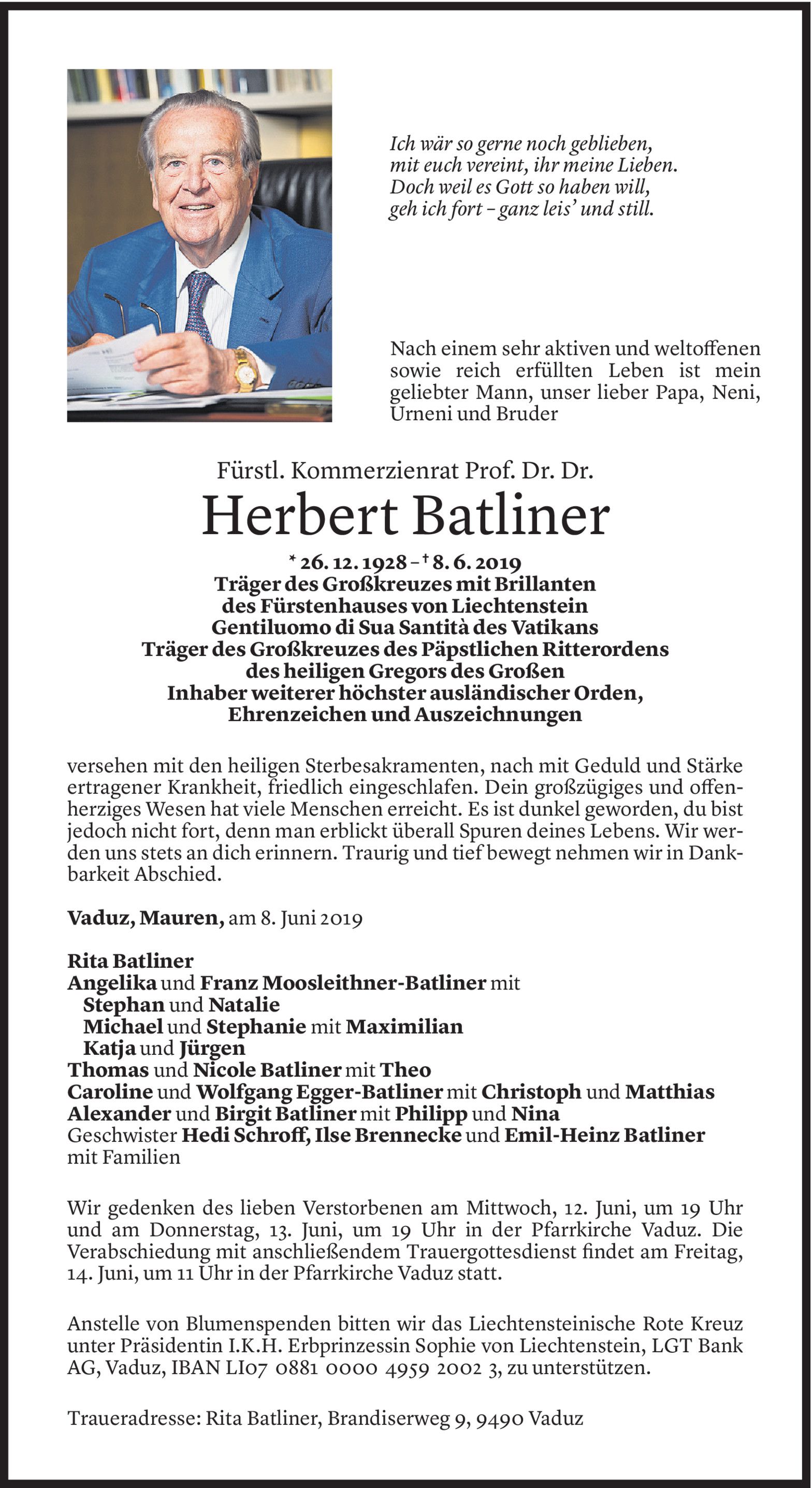 Mäzen Herbert Batliner verstorben