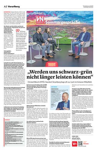 FPÖ-Chef Christof Bitschi im VN-Sommergespräch: Bürokratieabbau als Ziel. »A2