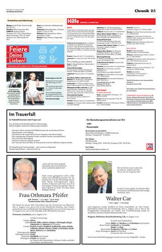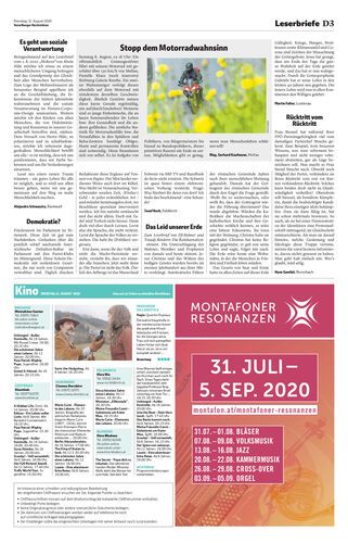 Dienstag 11. August 2020