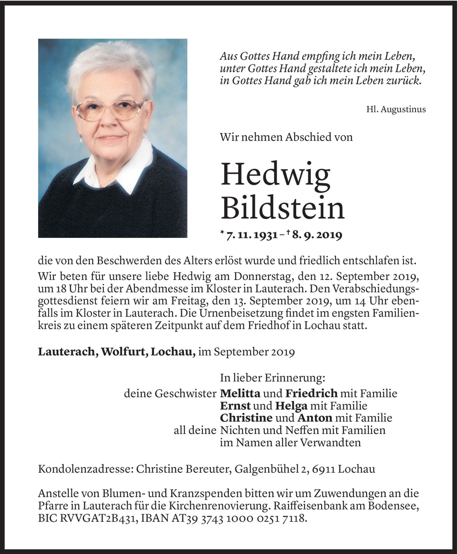 Mittwoch 11. September 2019