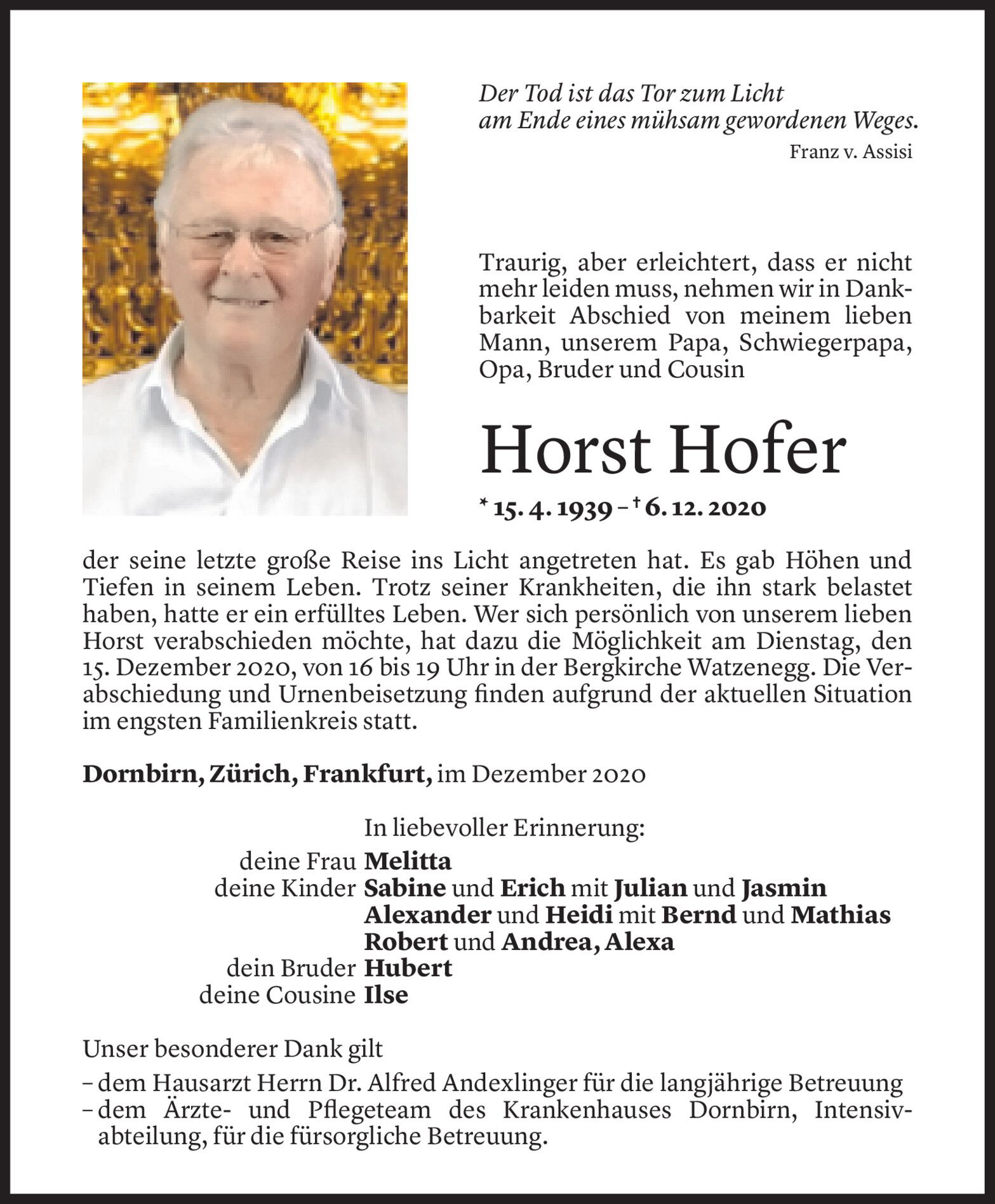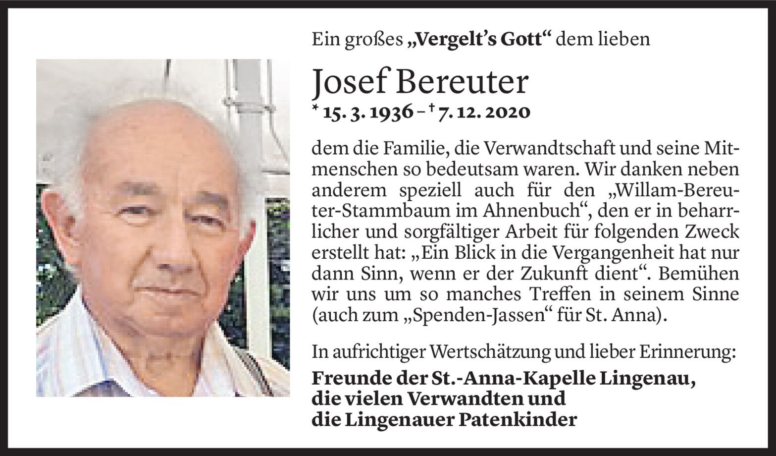 Große Trauer um Helmut Amann