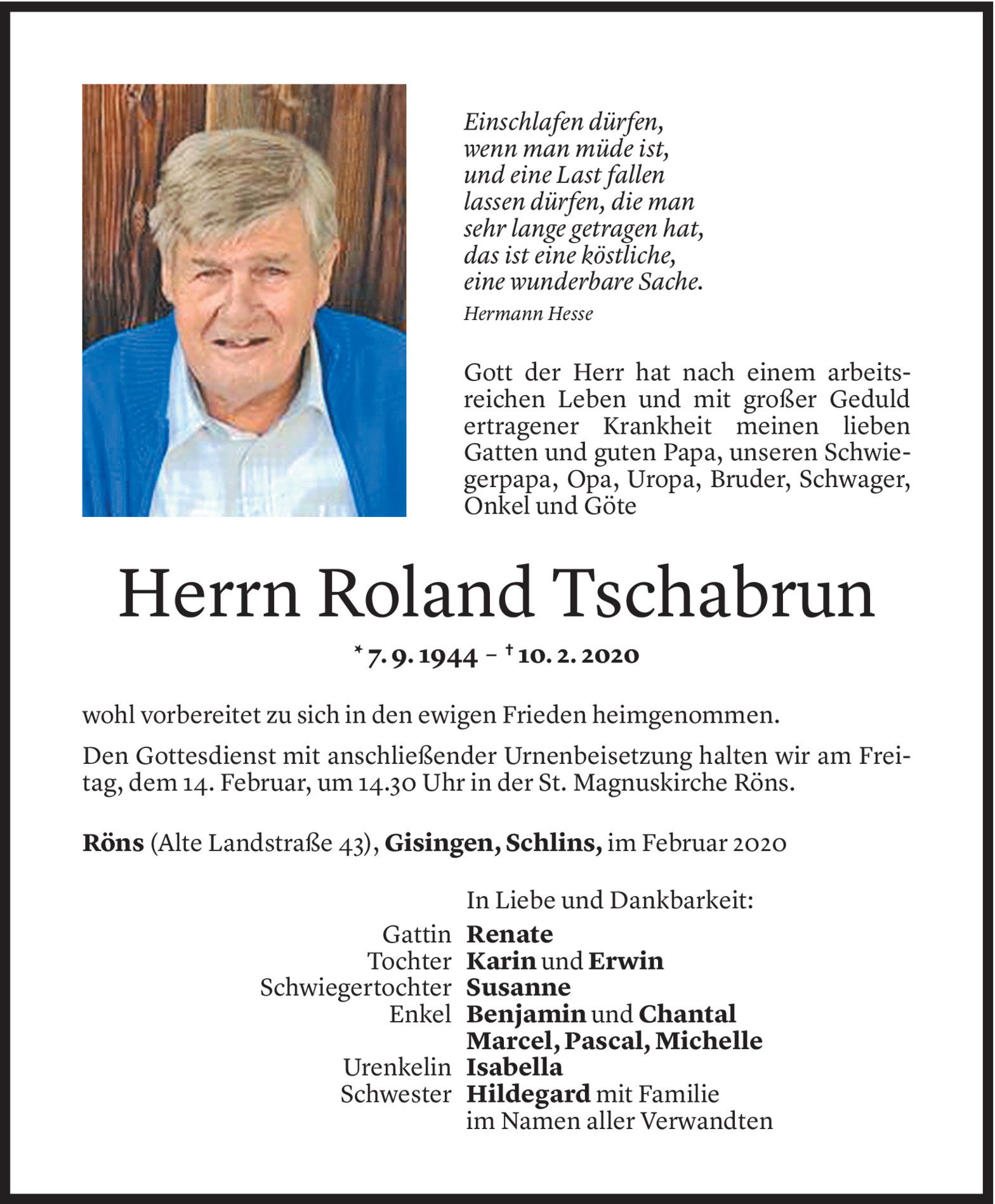 Mittwoch 12. Februar 2020