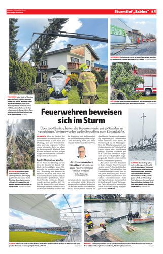 Über 200 Einsätze in 30 Stunden erforderte Sturm „Sabine“ in Vorarlberg. »A5