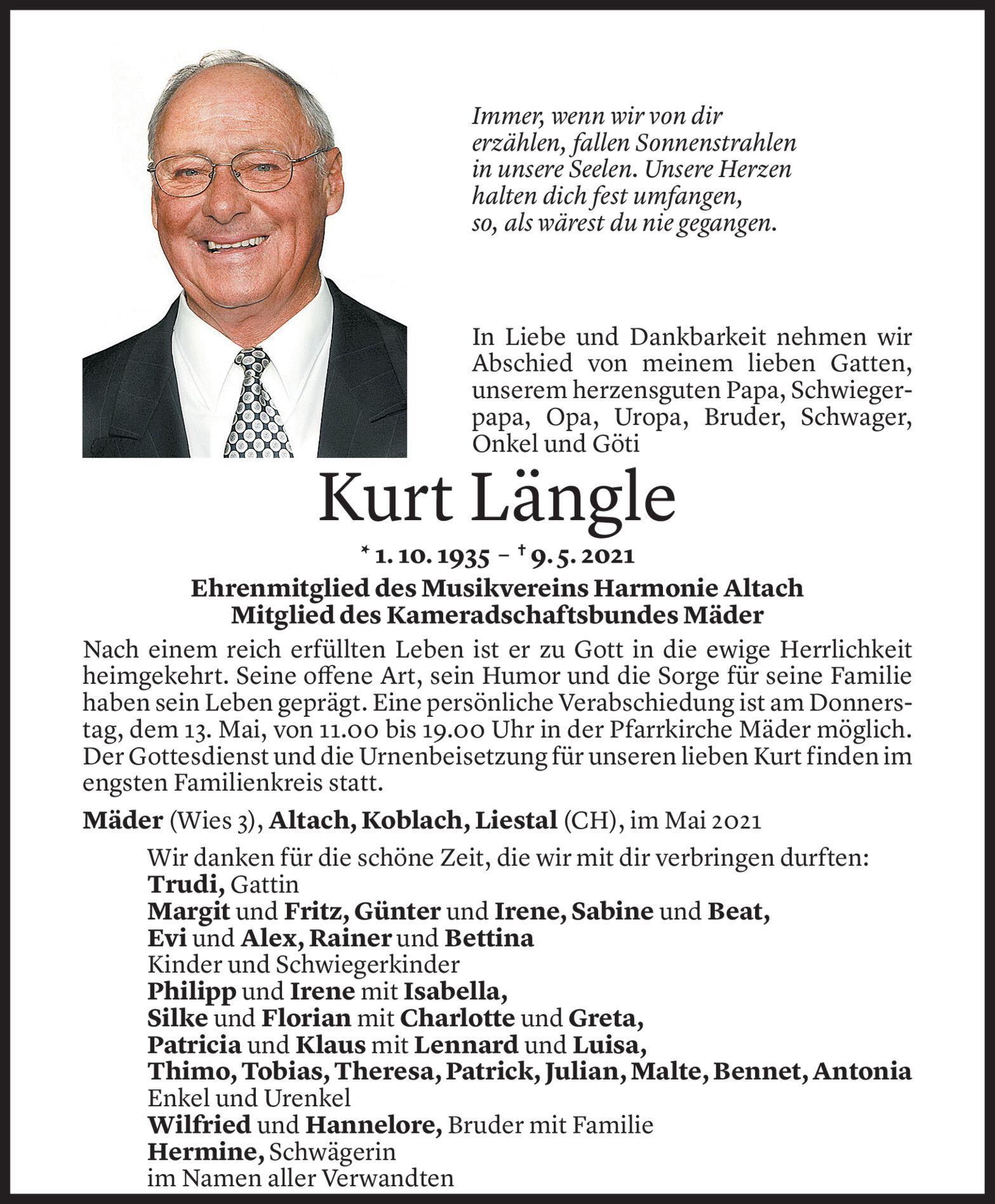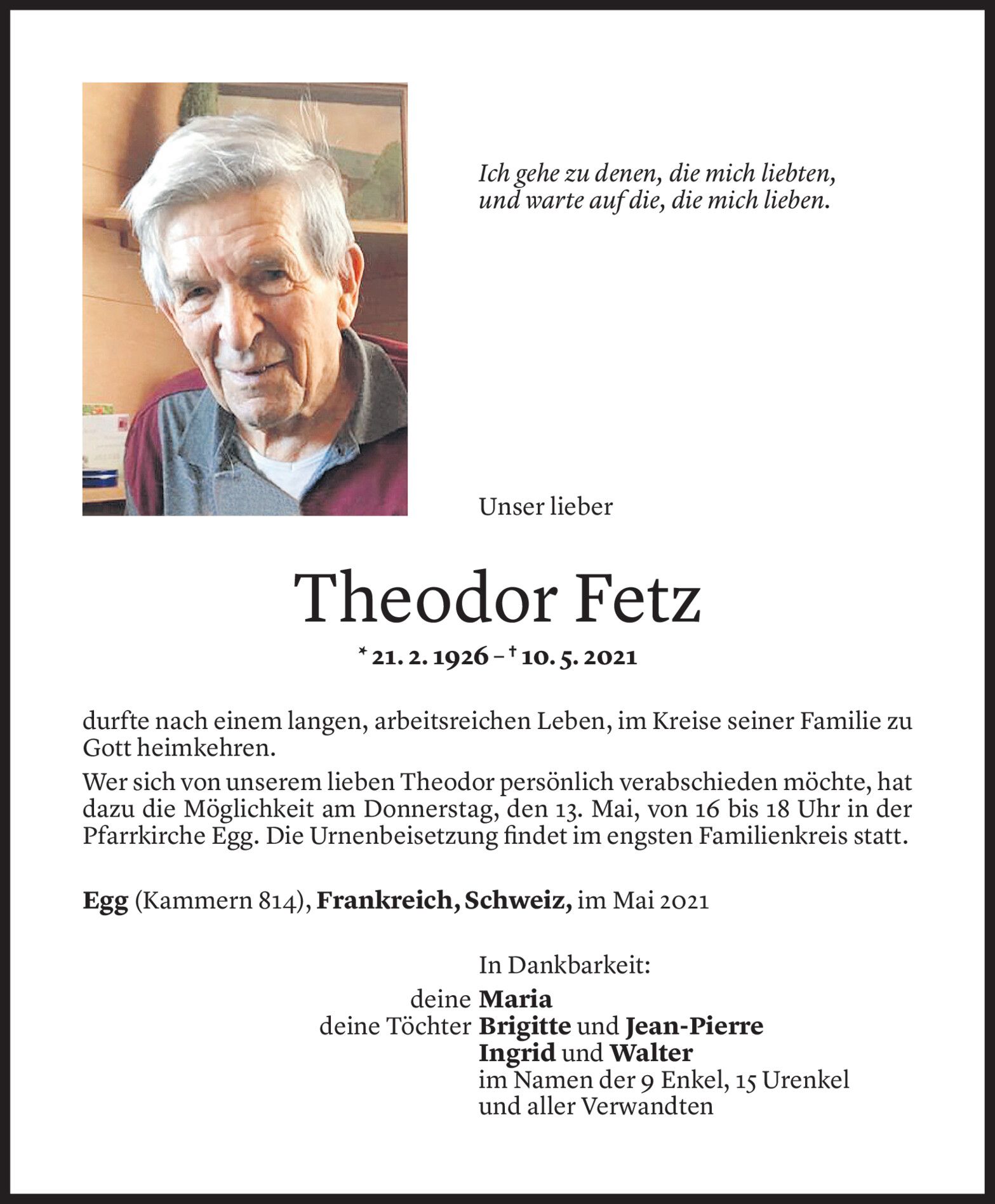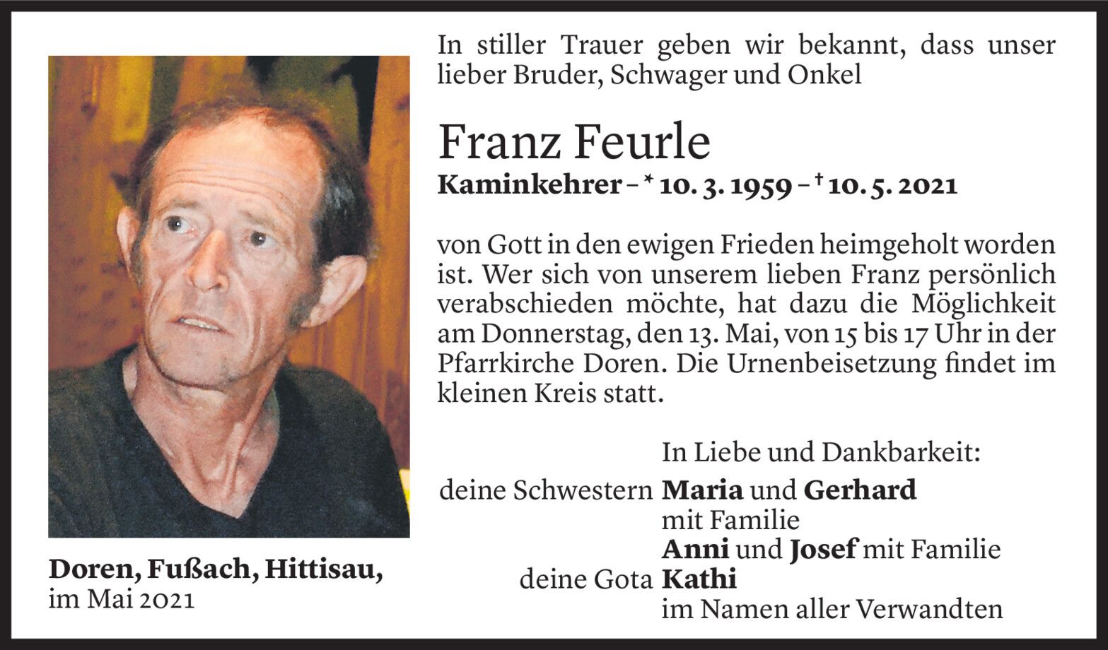 Mittwoch 12. Mai 2021