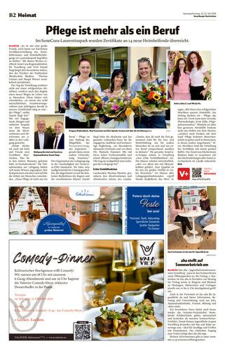 Im SeneCura-Laurentiuspark wurden Zertifikate an 14 neue Heimhelfende überreicht.