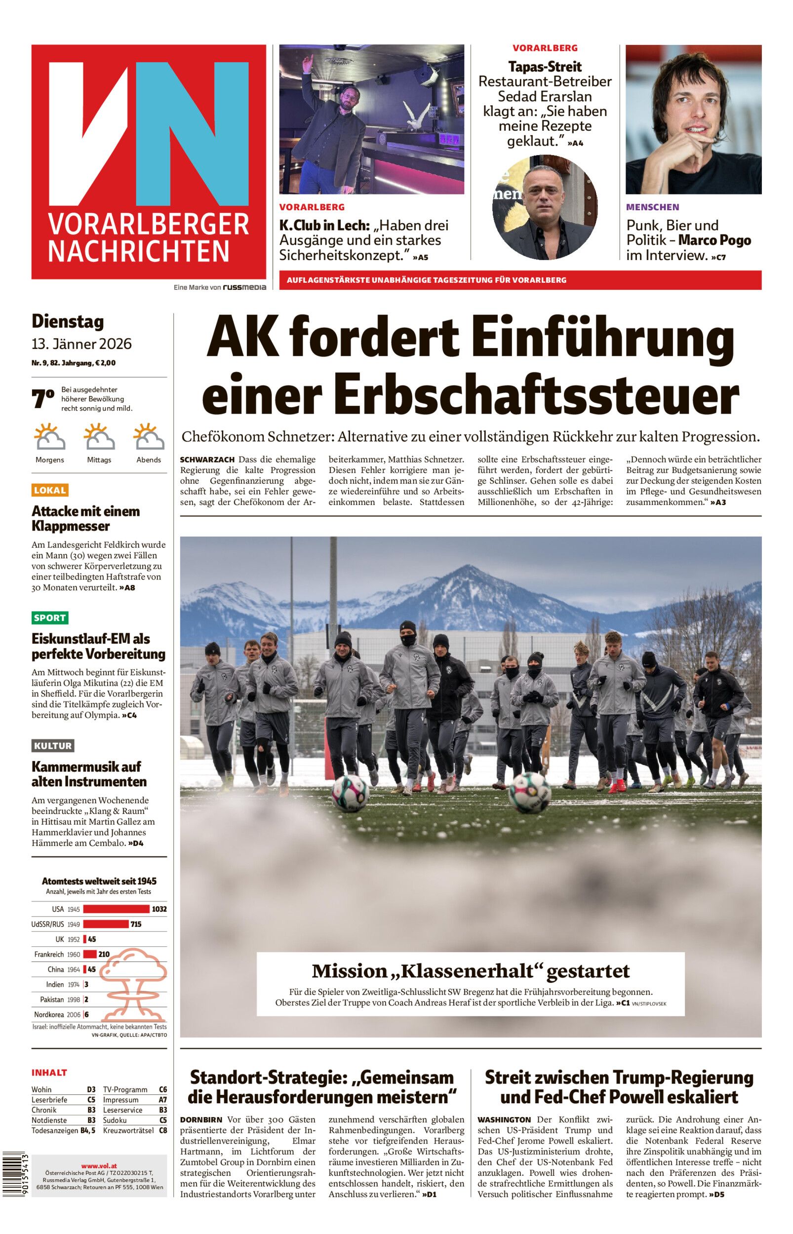 Dienstag 13. Januar 2026