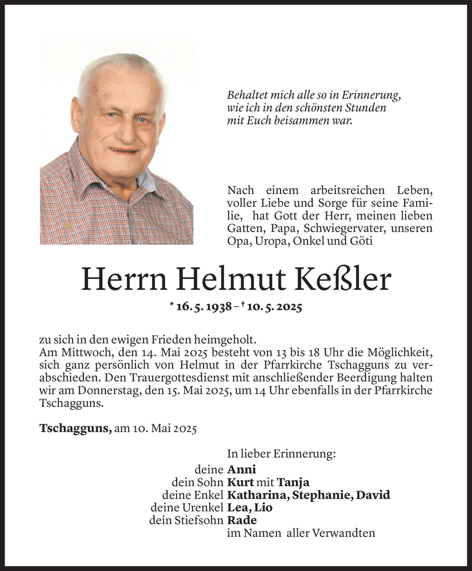 Dienstag 13. Mai 2025