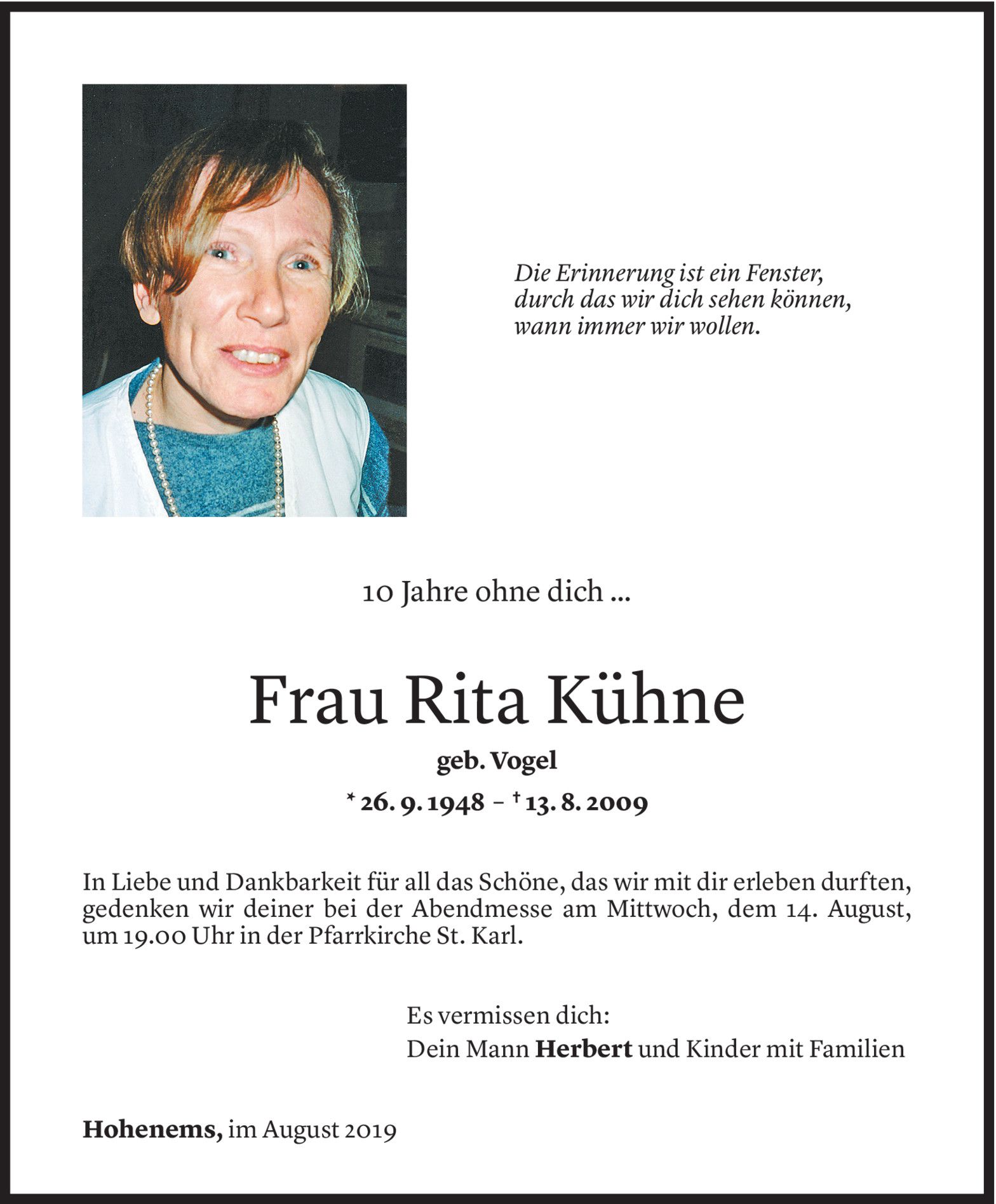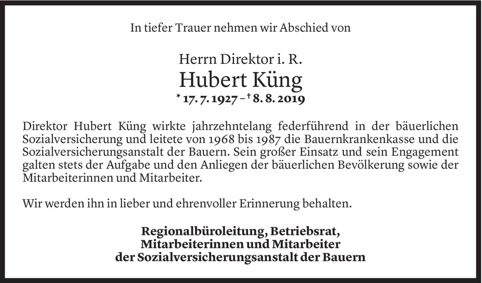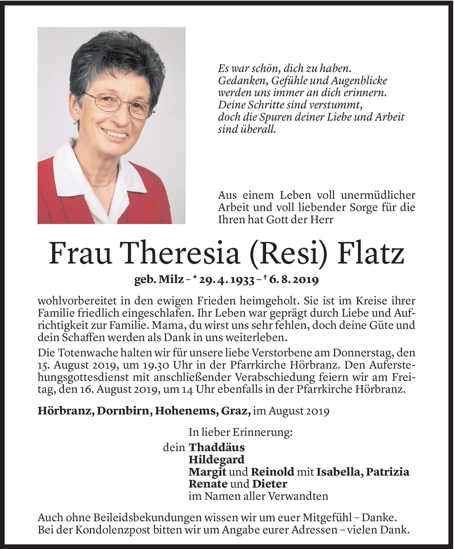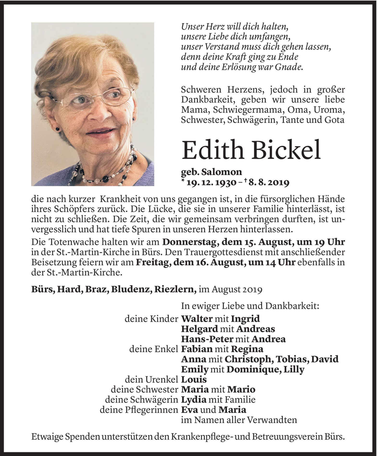 Dienstag 13. August 2019