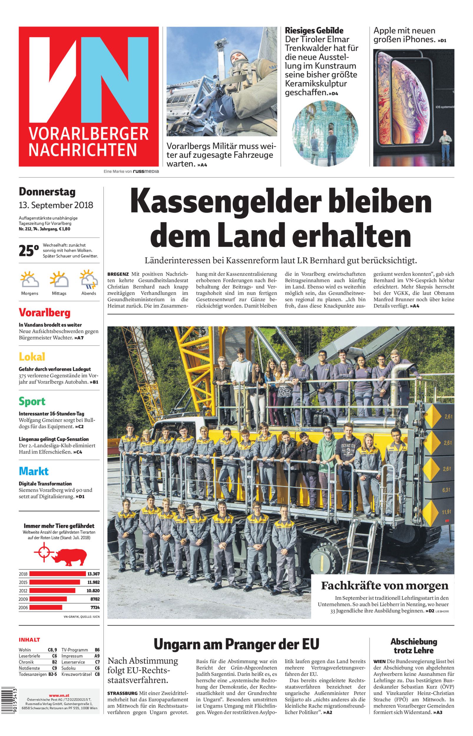 Donnerstag 13. September 2018