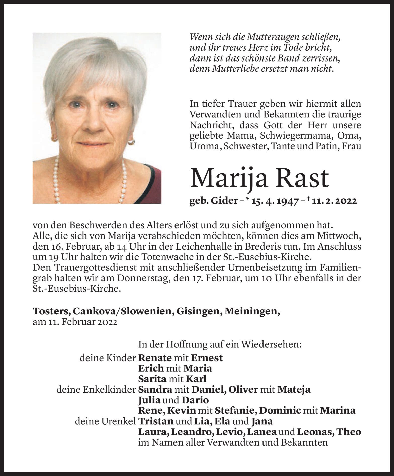 Montag 14. Februar 2022