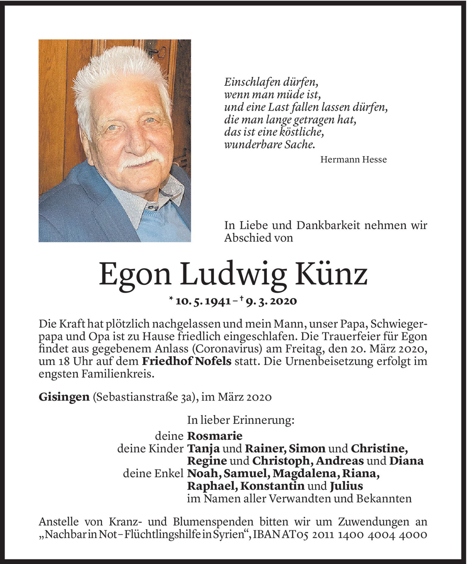 Samstag 14. März 2020