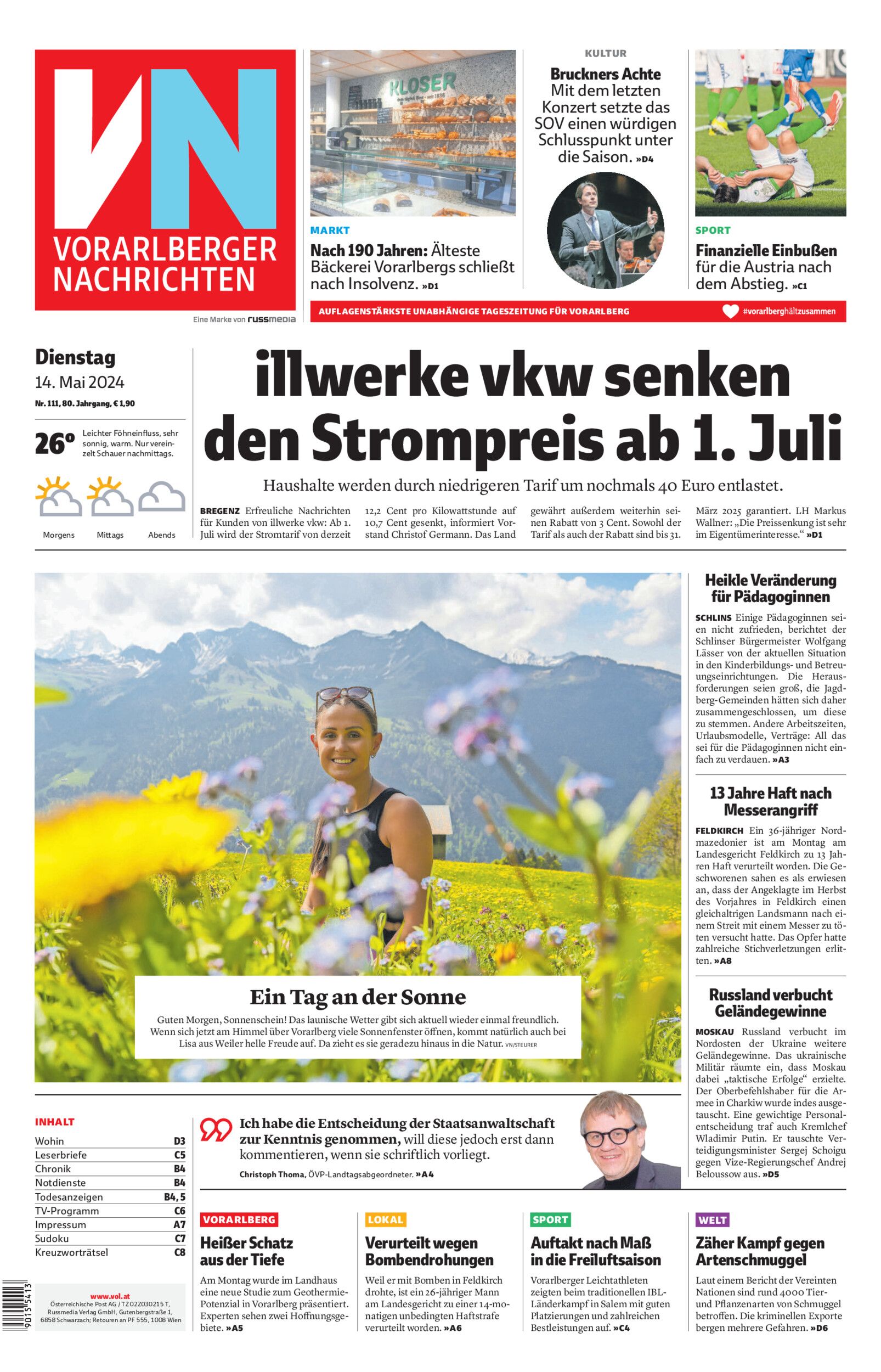 illwerke vkw senken den Strompreis ab 1. Juli