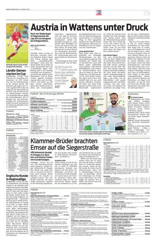 VfB Hohenems besiegt FC Pinzgau 3:1, Dornbirn und Altachs Fohlen mit Auswärtssiegen.