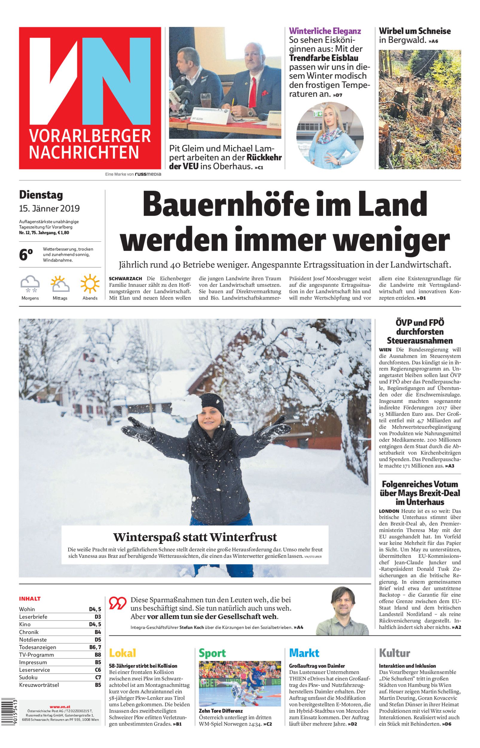 Dienstag 15. Januar 2019