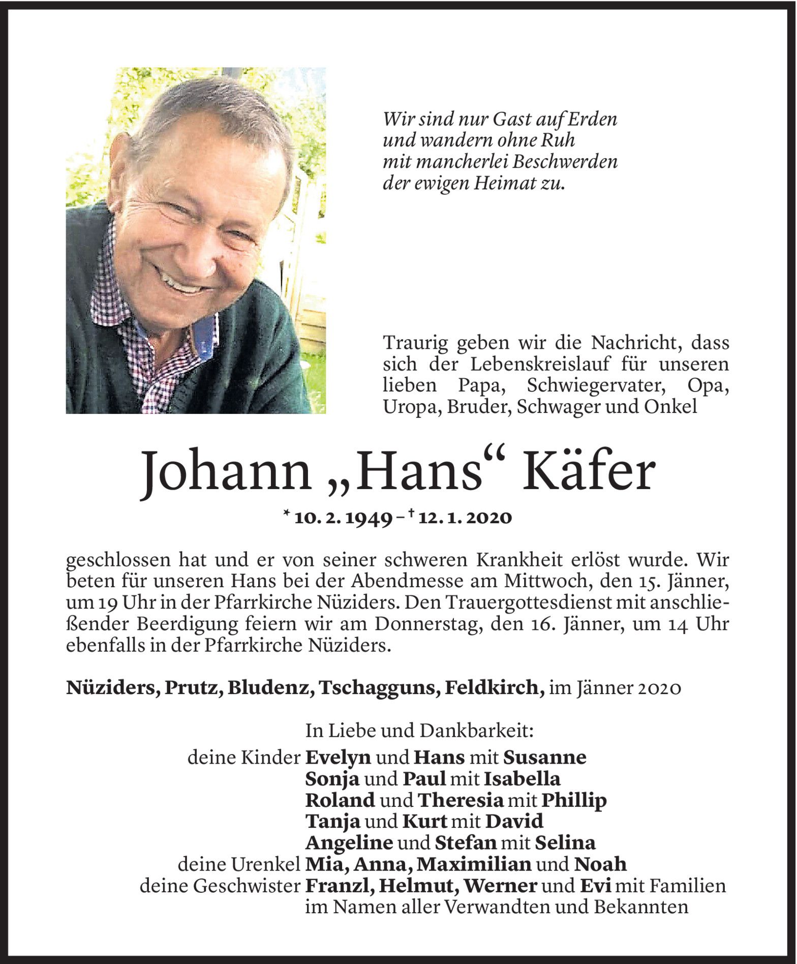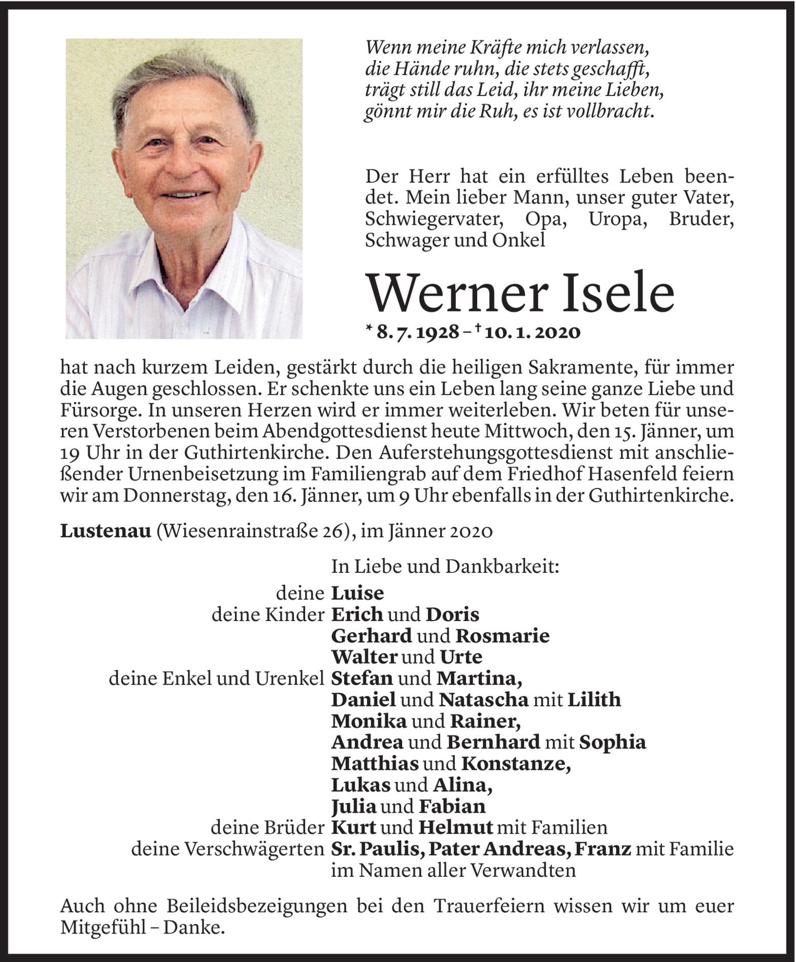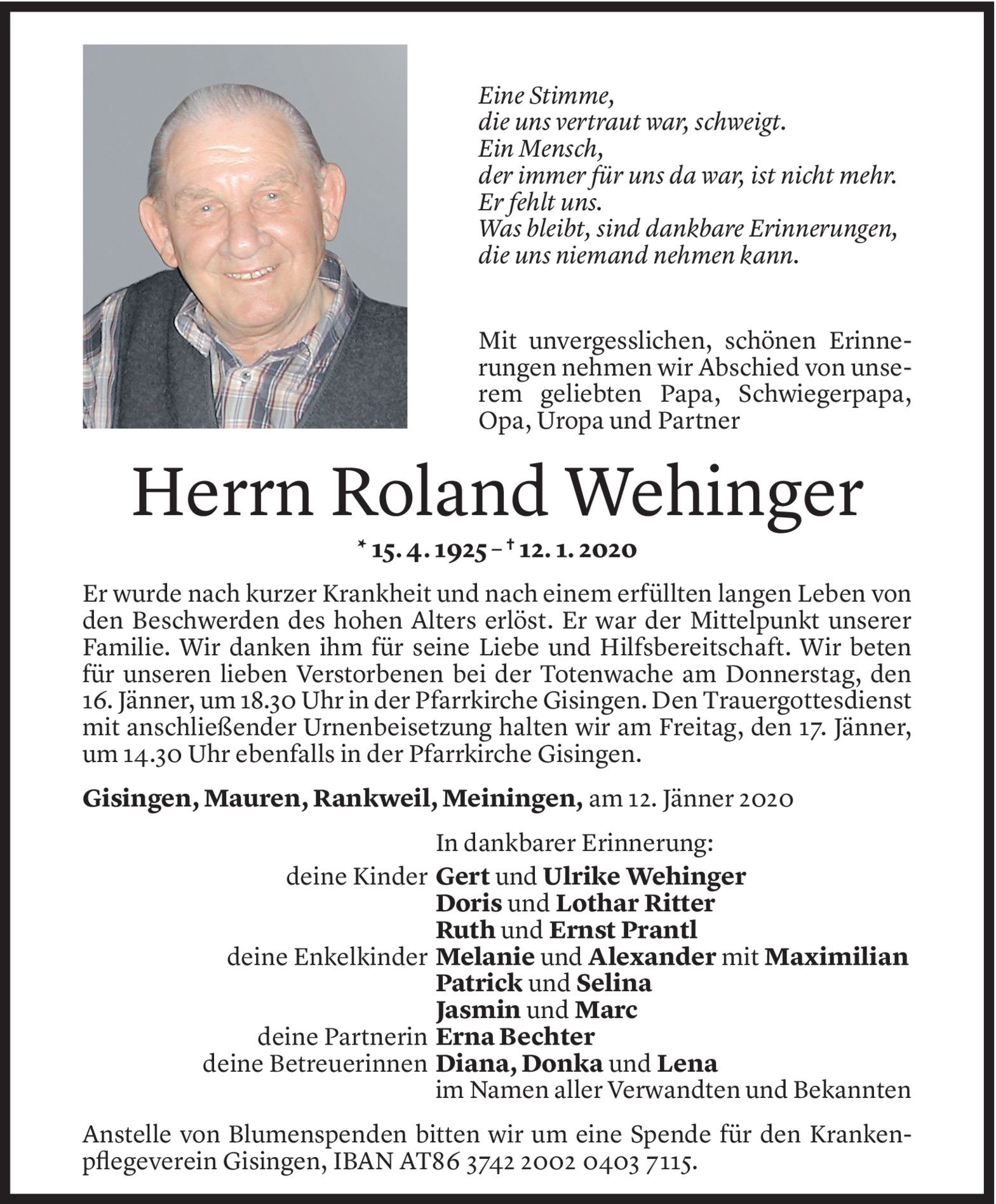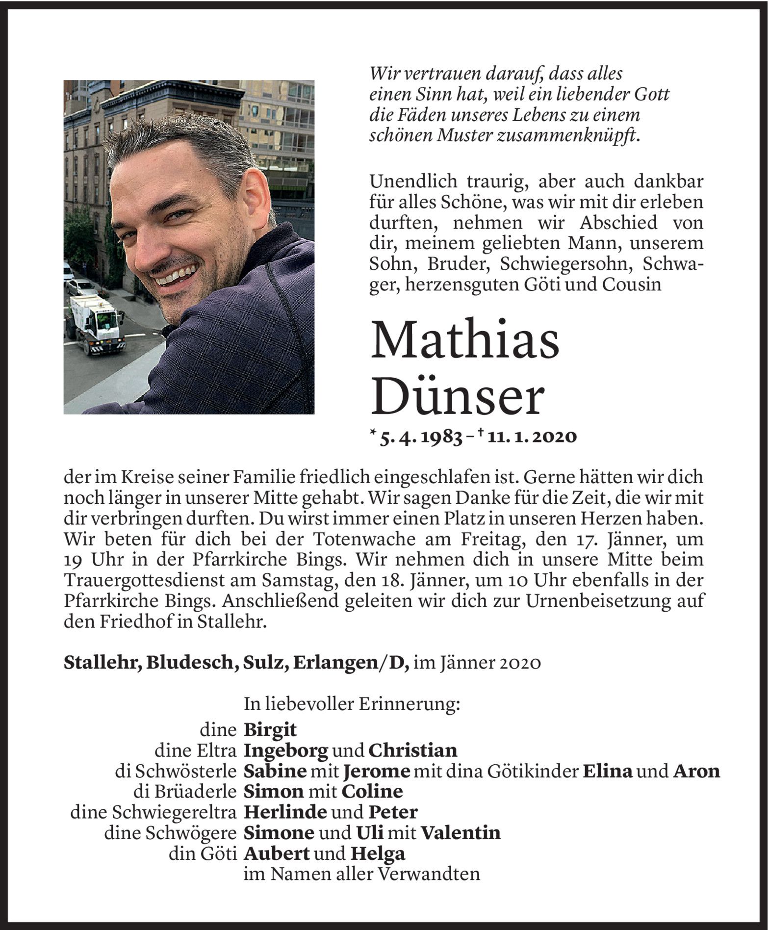 Mittwoch 15. Januar 2020