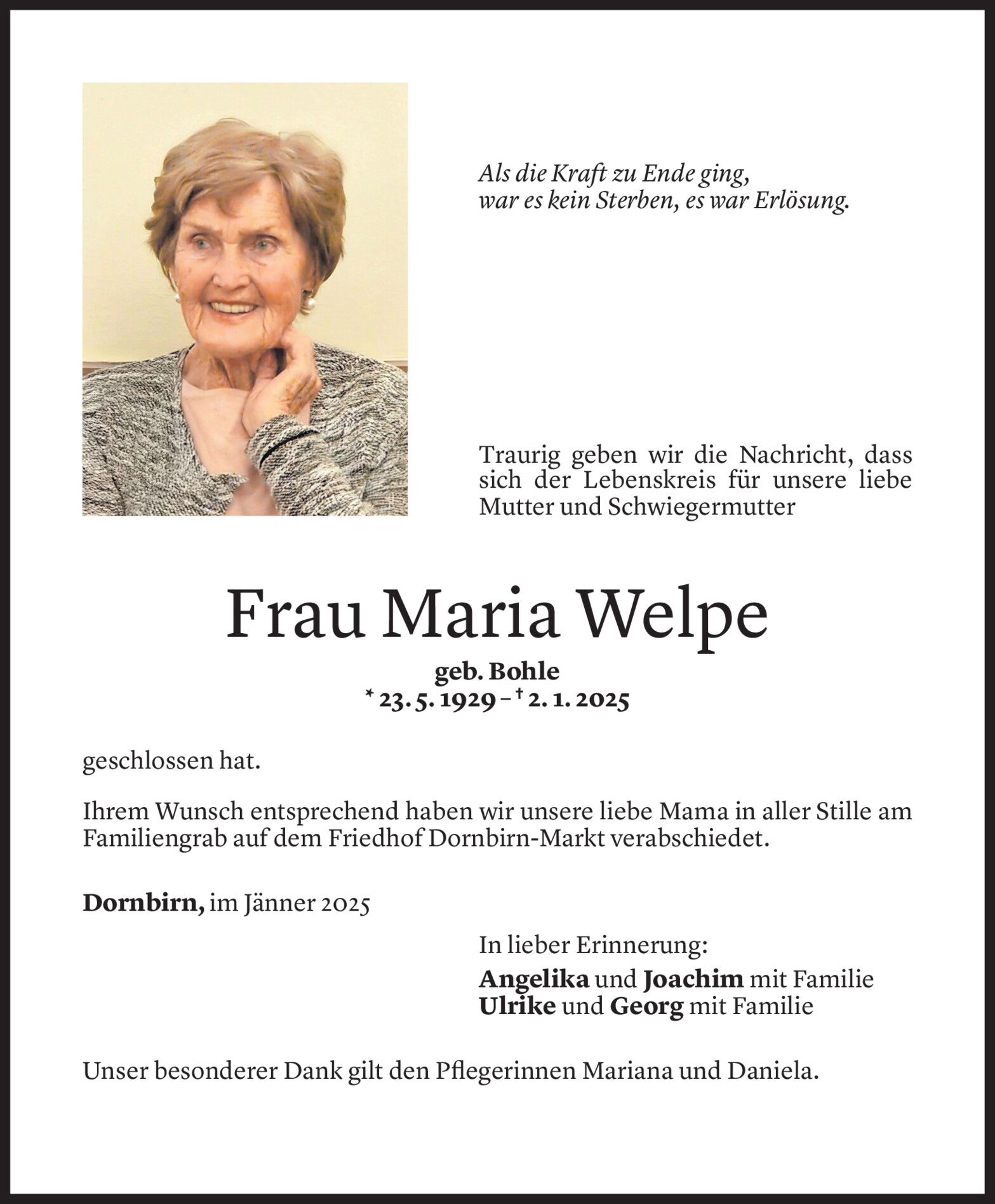 Gedenken an Tochter